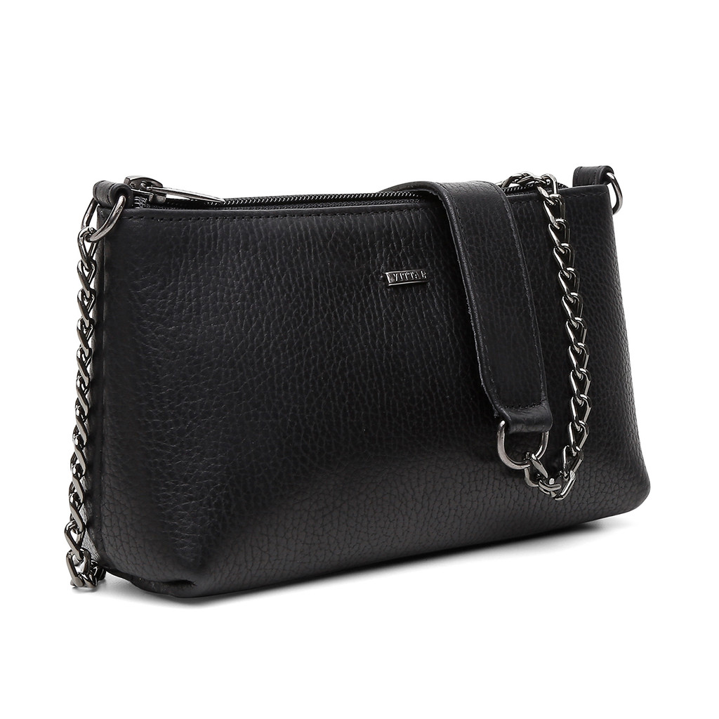 Bolsa Feminina Vittal Clutch Annelise em Couro Legitimo Preta Alça Corrente