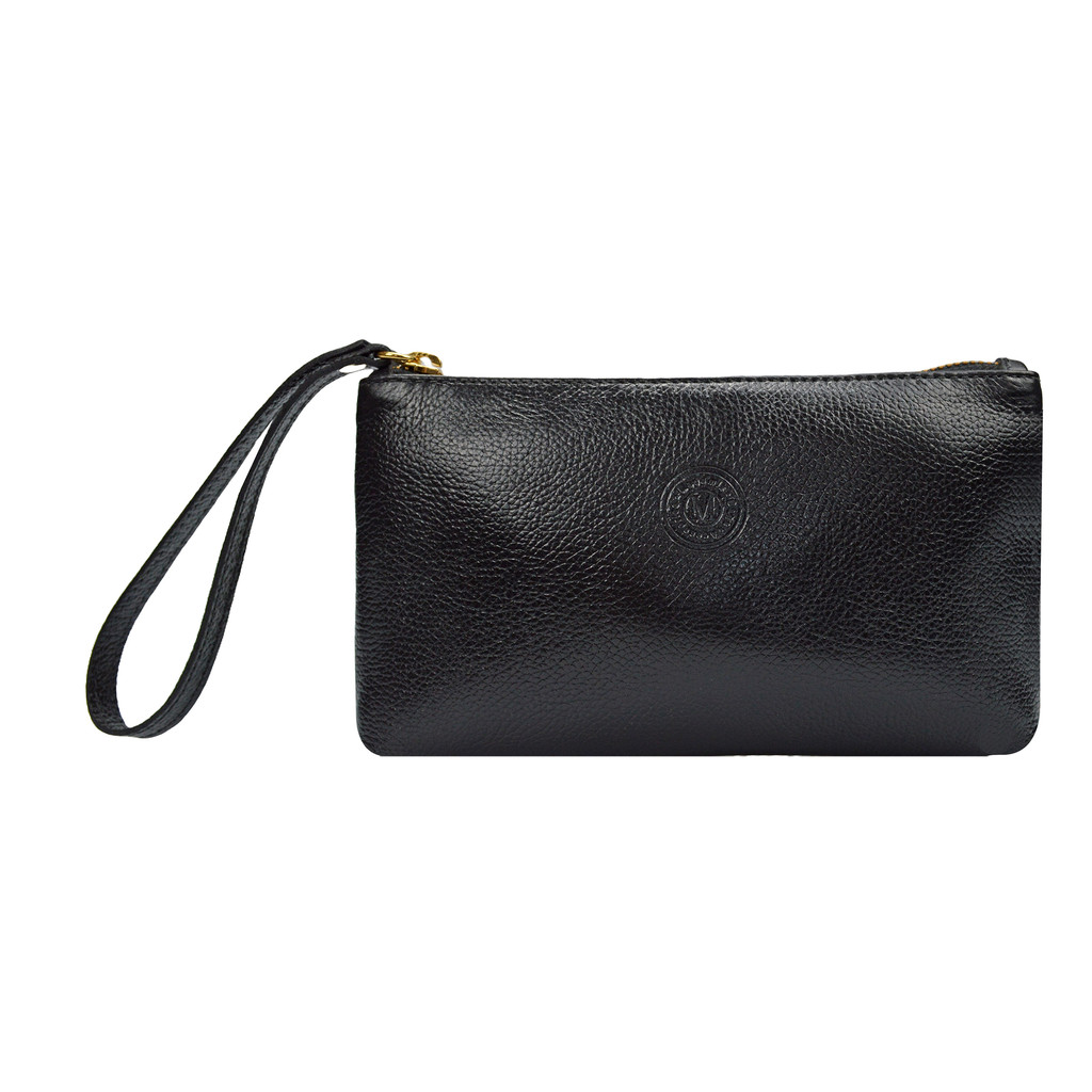 Bolsa Clutch feminina de couro, bolsa para celular de grande capacidade com zíper duplo