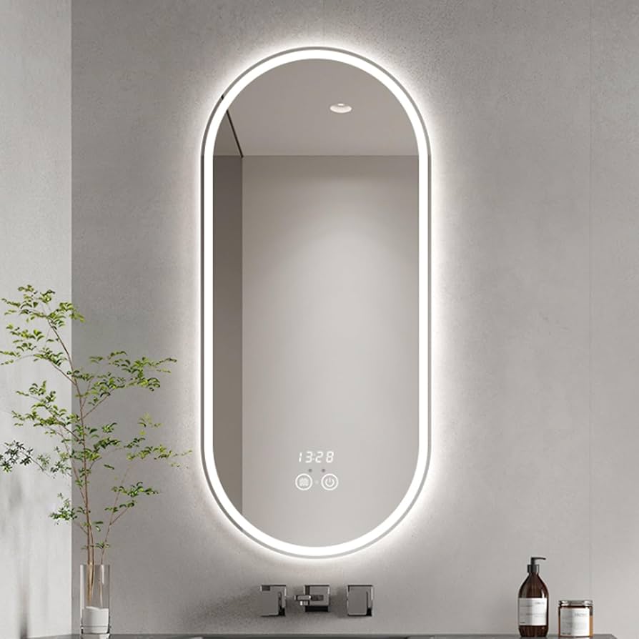 Breaking away from the traditional rectangular shape, the HOK LED Oval Smart Mirror represents the trendy move towards softer, more organic shapes in modern bathroom design. This frameless oval mirror serves as a stylish focal point, adding a touch of elegance and visual interest. It is a top-of-mind product for those seeking to combine modern technology with a distinctive design. The mirror features smart-touch controls for its adjustable LED brightness, allowing users to customize their lighting. The slim and sleek profile of this oval mirror makes it an iconic choice for consumers looking to create a modern and sophisticated bathroom environment.