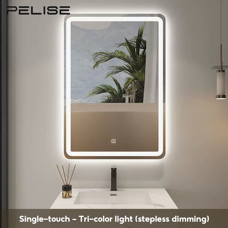 The Pelise Bathroom Smart Mirror is a prime example of the modern trend of integrating technology into bathroom fixtures. It features a sleek, frameless rectangular design that gives it a minimalist and clean look, perfect for contemporary bathroom styles. This smart mirror pushes the trend forward with its built-in, three-tone LED lights that provide flexible and even lighting for tasks like makeup application and shaving. It also includes practical smart features such as a touch sensor for controls, stepless dimming to adjust brightness, and a crucial anti-fog function that ensures a clear reflection even in humid post-shower conditions. Its waterproof construction makes it a safe and durable choice for any modern home.