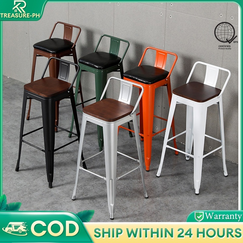 【COD】65/75CM Bar Chair With Backrest Footrest Metal Cafe High Stools Home Kitchen Modern Barstool