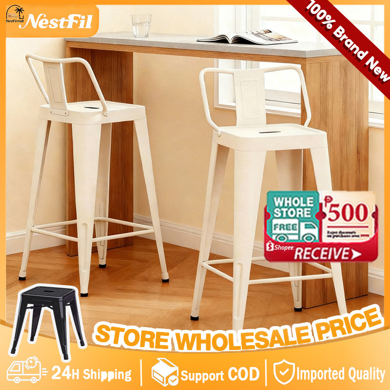NestFil Bar Stool 45/66/76cm High Chair Steel With Backrest Modern Style Stackable Colors Available