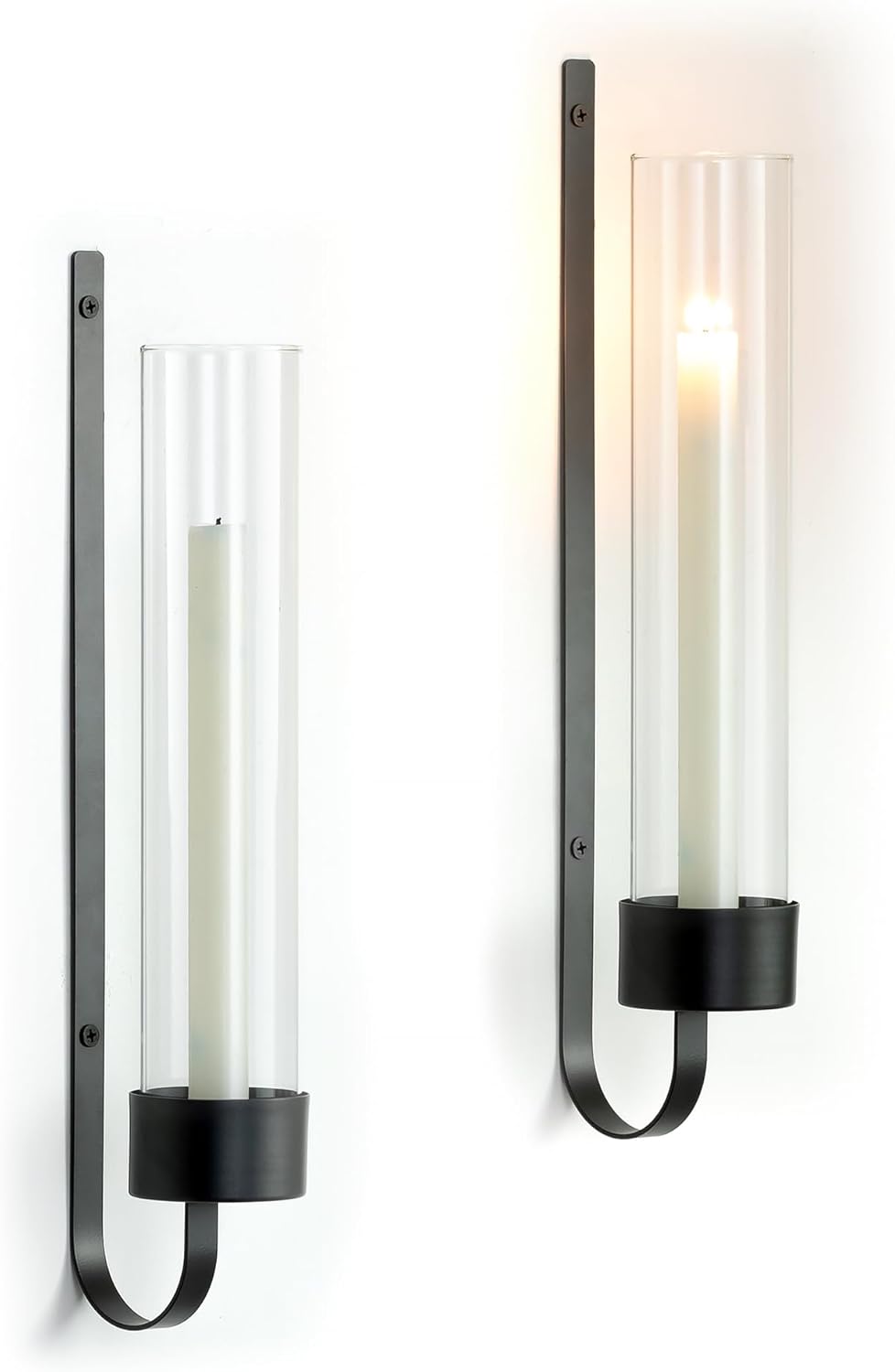 Sziqiqi Black Wall Candle Holders: Metal Candle Sconces for Taper Set of 2 Modern Wall Mounted Candlestick Holder with Hurricane Glass for Living Dining Room Bedroom Bathroom Outdoor