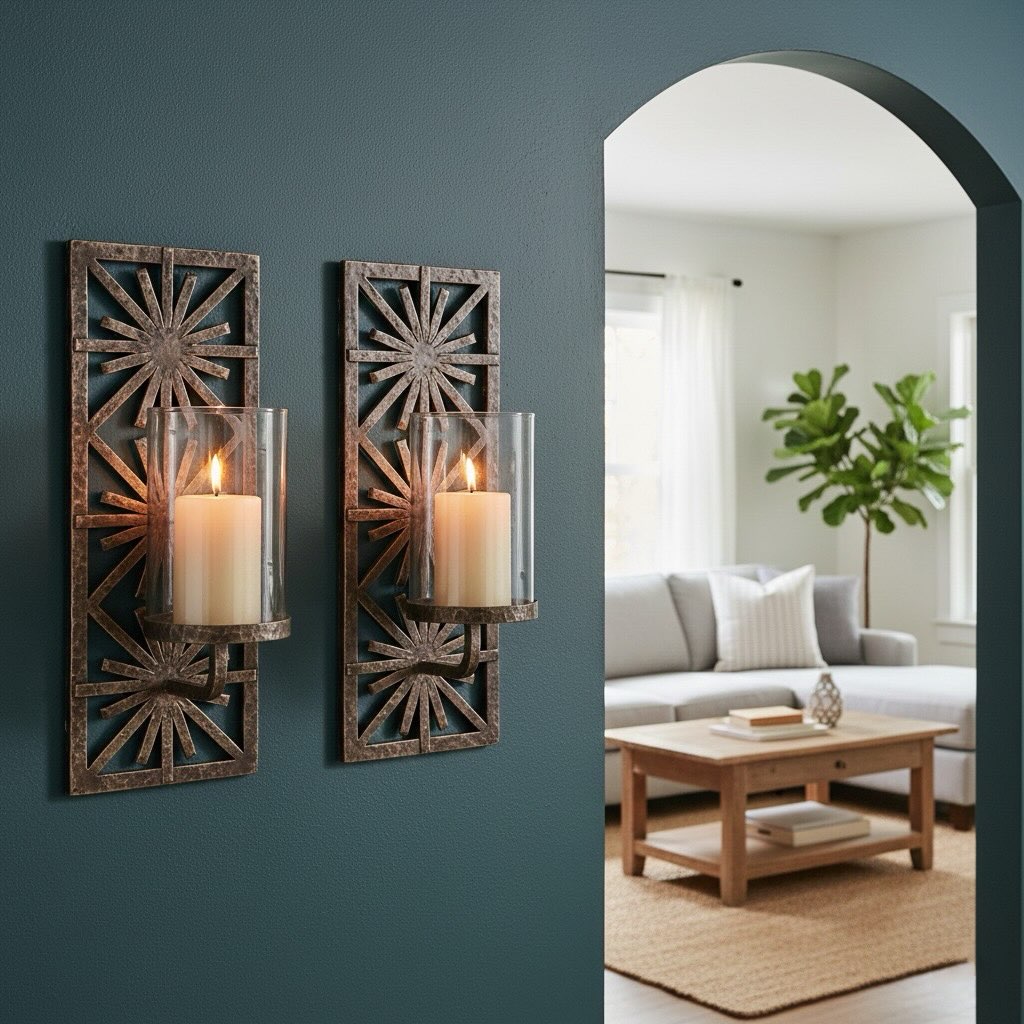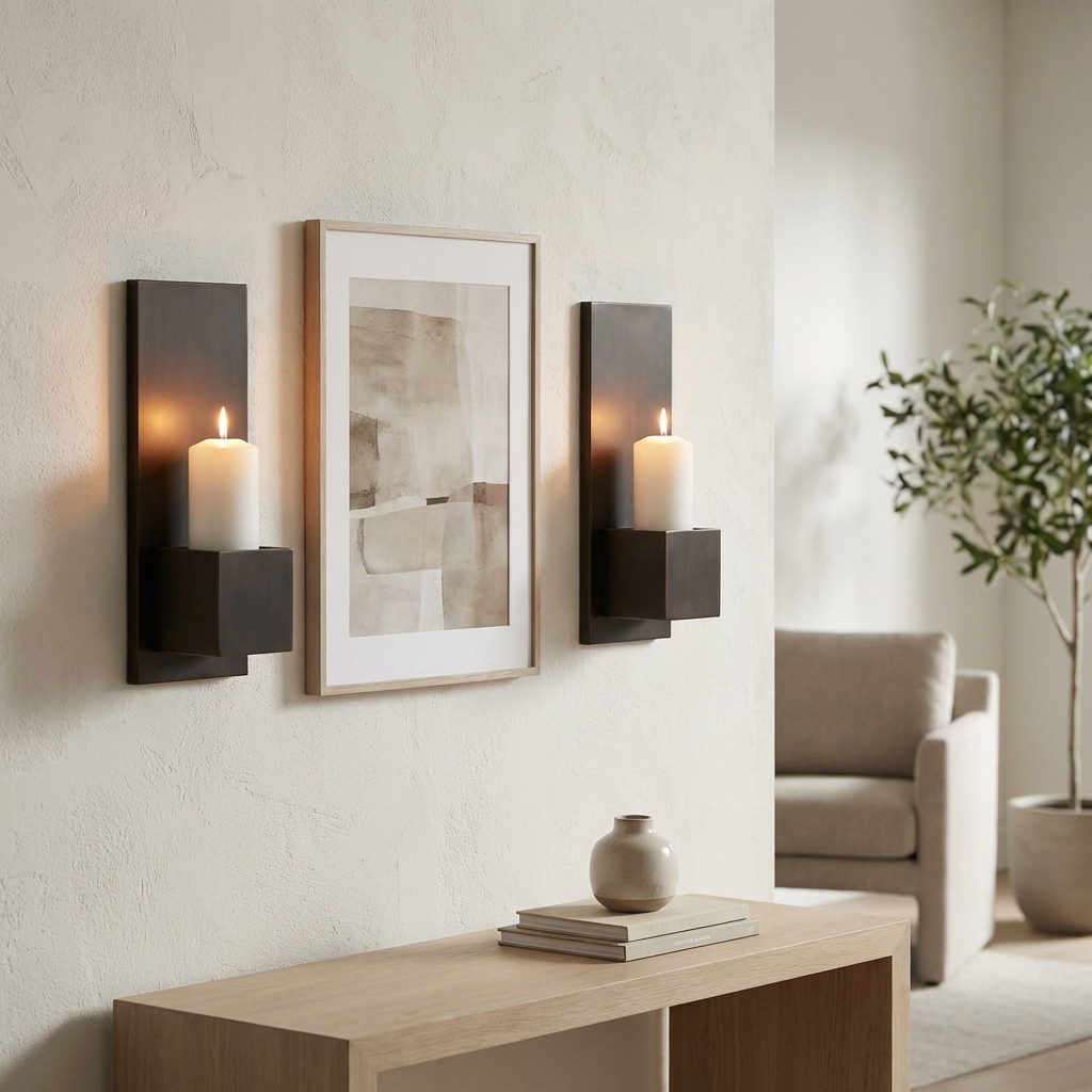 Modern wall candle holders are trending as a way to add layered, ambient lighting without taking up floor or surface space. Designs range from minimalist and geometric metal sconces to those featuring natural materials like wood and alabaster.