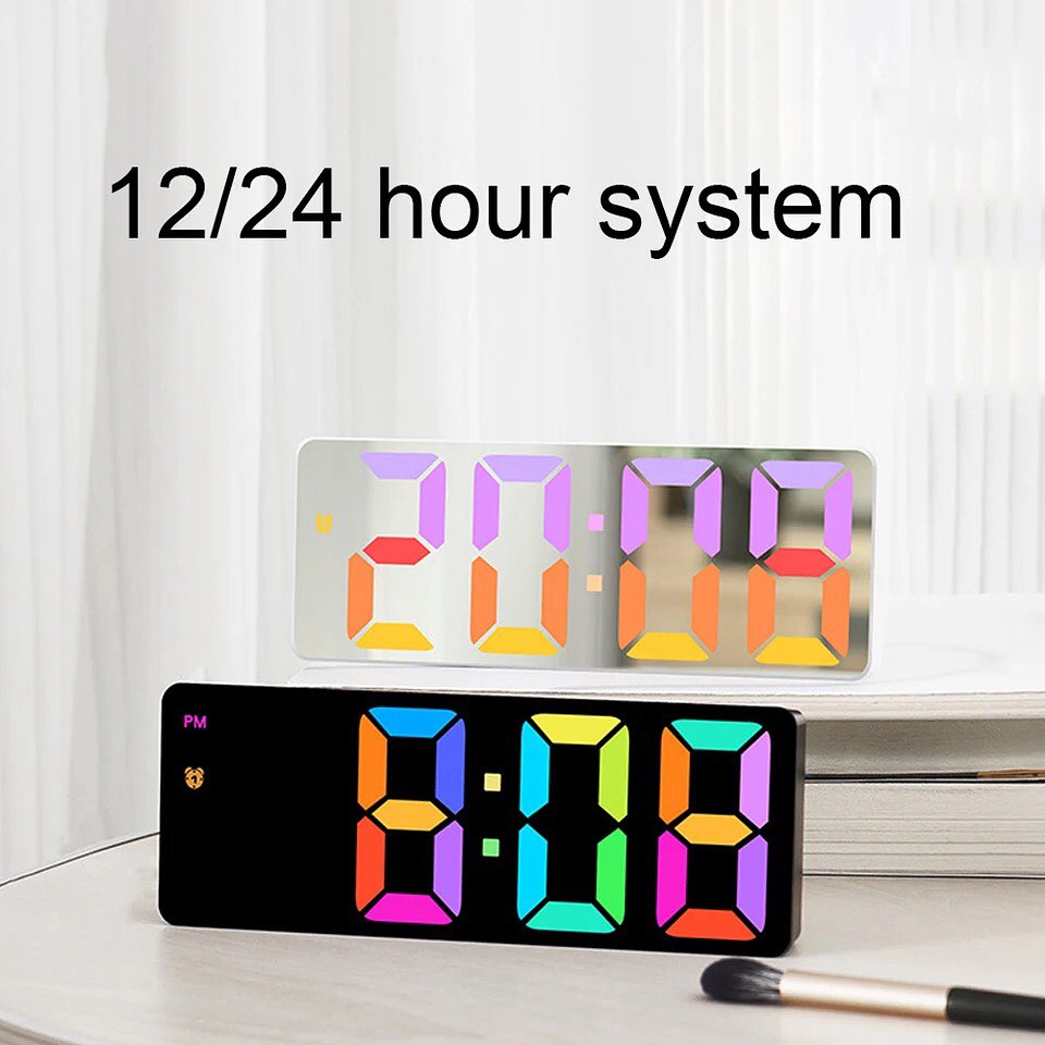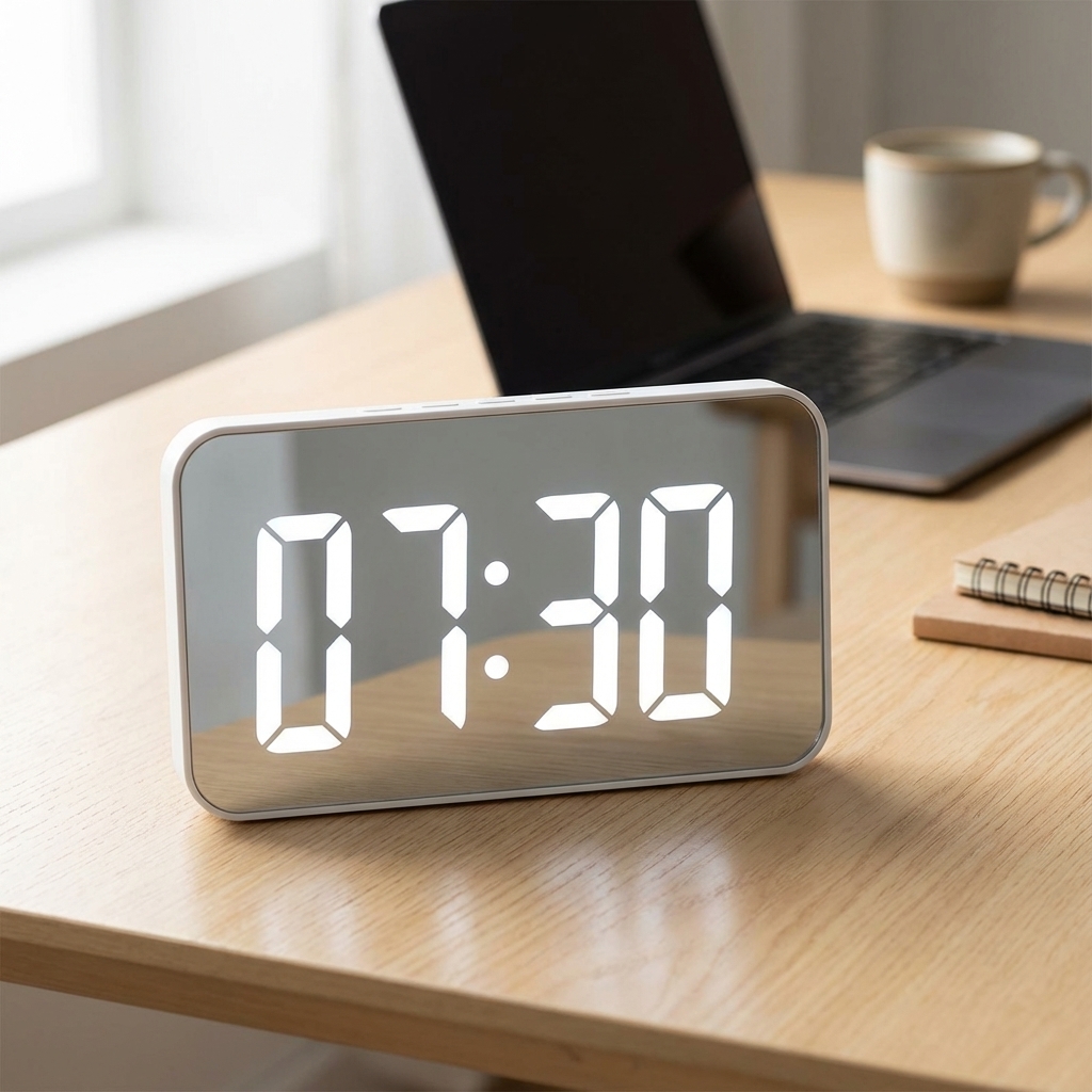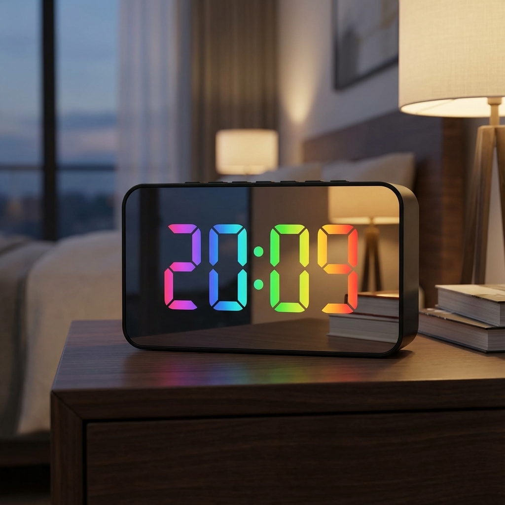 A popular generic clock with a large, curved LED display that functions as a mirror. It includes a silent alarm and a snooze function. Its prevalence on online retail platforms highlights strong consumer demand for stylish, modern timepieces.
