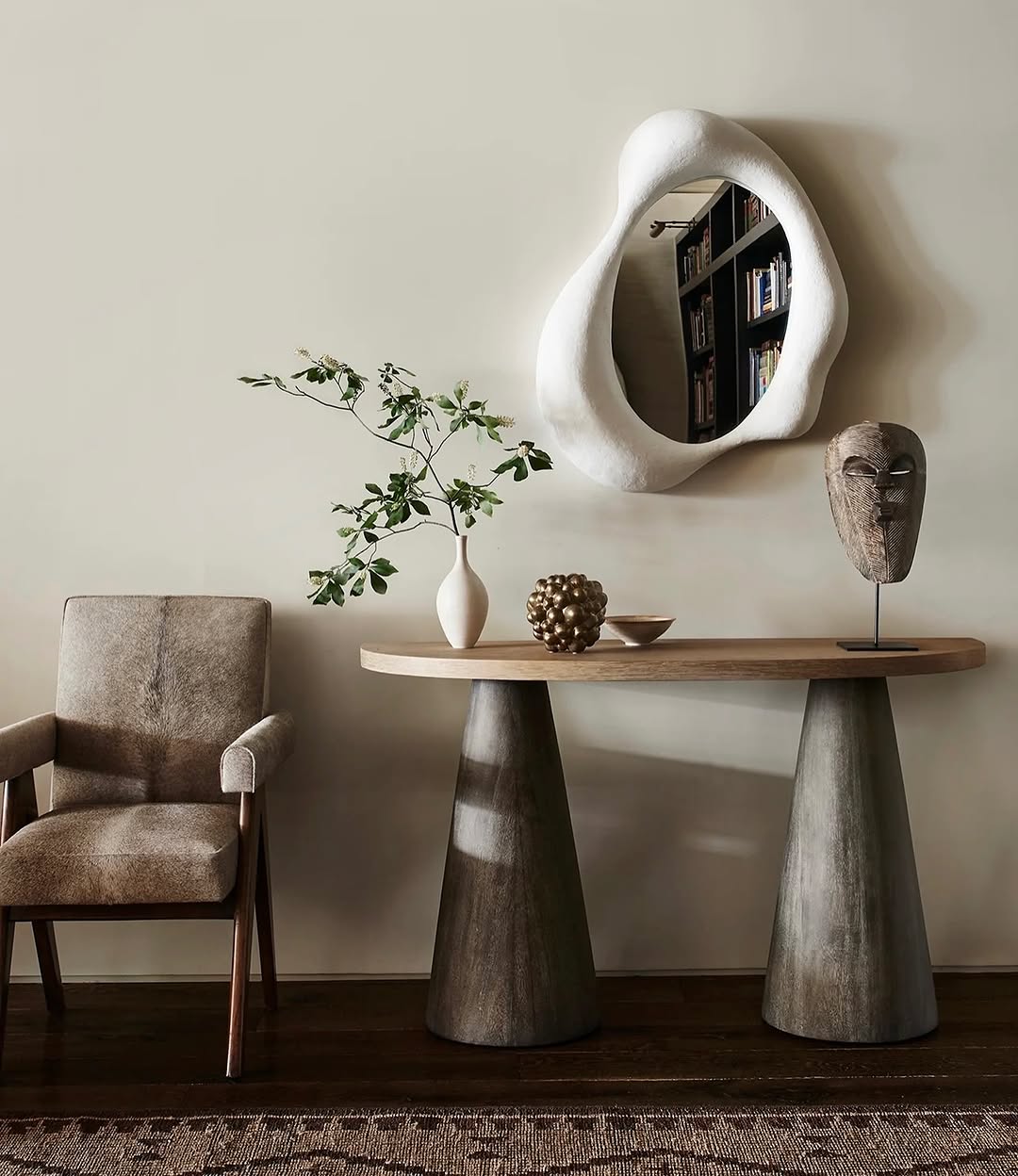 Key Product: Memini Burl Wood Wall Mirror by Athena Calderone