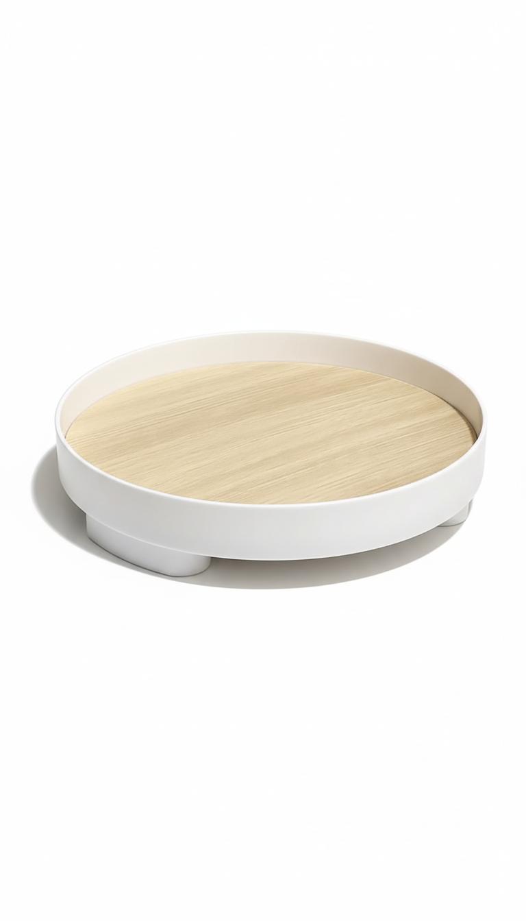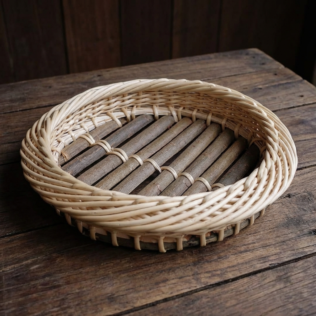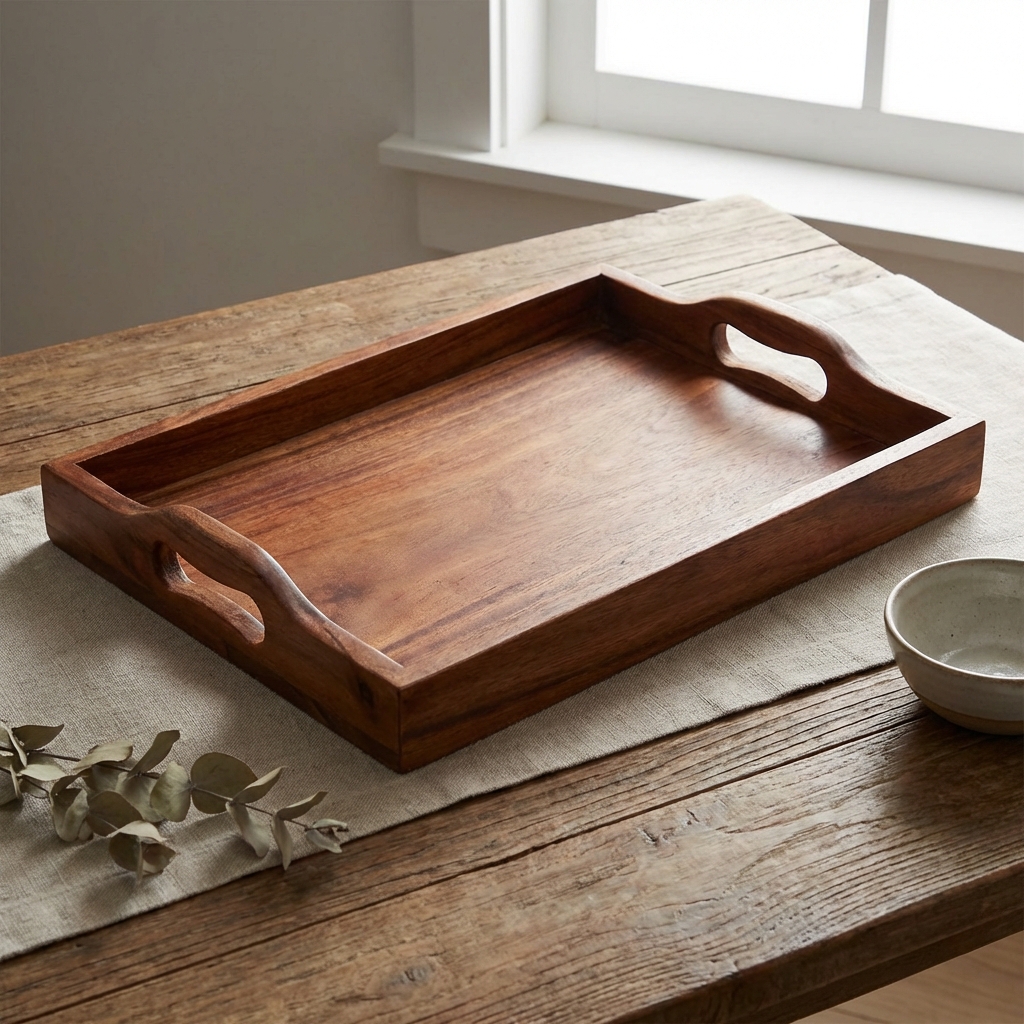 These trays are crafted from organic materials like wood, bamboo, rattan, and stone. They often feature raw, unfinished, or lightly treated surfaces to highlight the material's natural texture and grain.