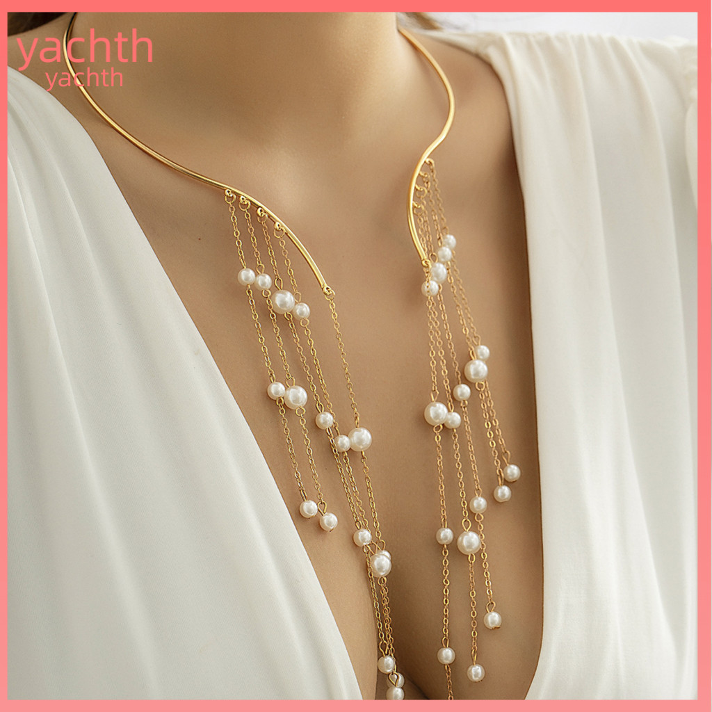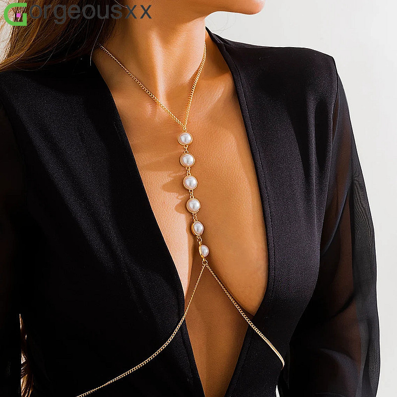 This body chain is a direct and fashionable interpretation of the organic pearl trend, designed for the modern consumer. It features baroque pearls, known for their irregular and non-spherical shapes, which ensures that each piece is unique. The pearls are elegantly spaced on a delicate, gold-plated chain that drapes across the torso. This product pushes the trend by taking pearls beyond traditional neckwear and transforming them into a full-body adornment, making a bold statement that is both sophisticated and daring. Its popularity on one of Brazil's largest semi-jewelry e-commerce platforms makes it a top-of-mind product for consumers seeking trendy and accessible body jewelry.