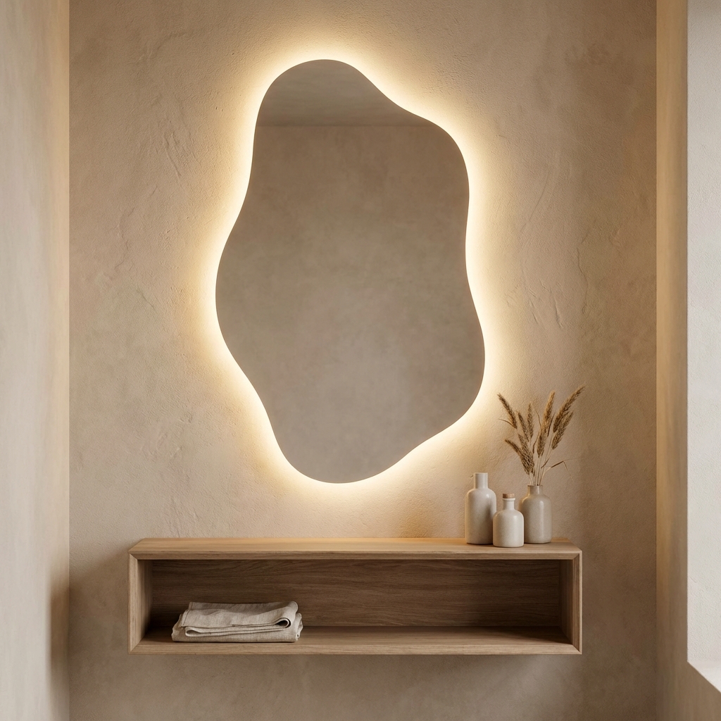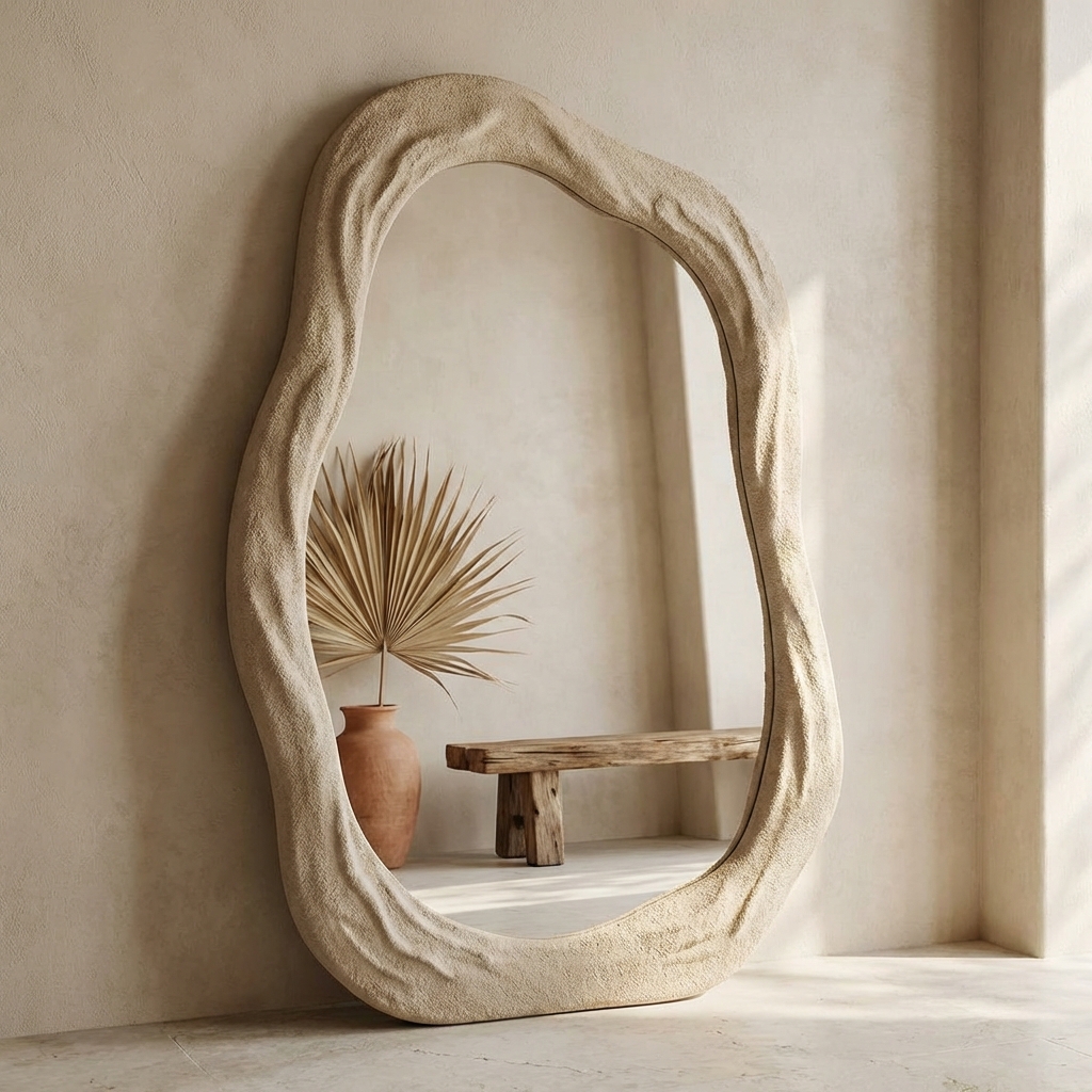 This theme moves away from traditional rectangular shapes in favor of softer, nature-inspired forms. Arched mirrors are highly popular, used to add visual height and a touch of timeless elegance.