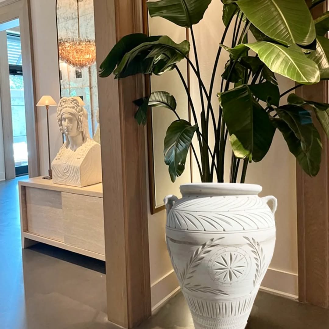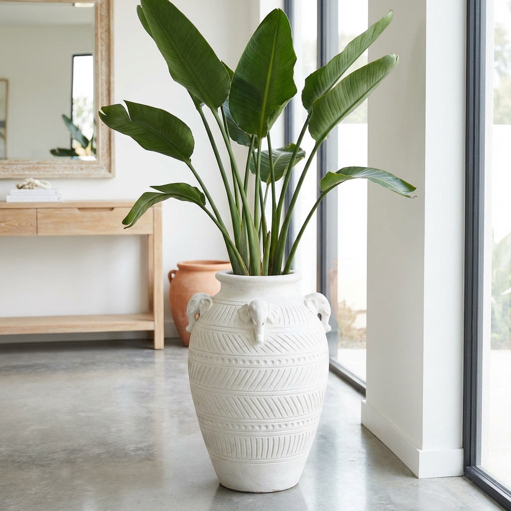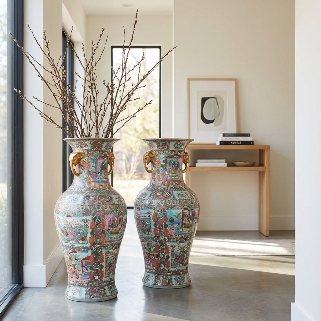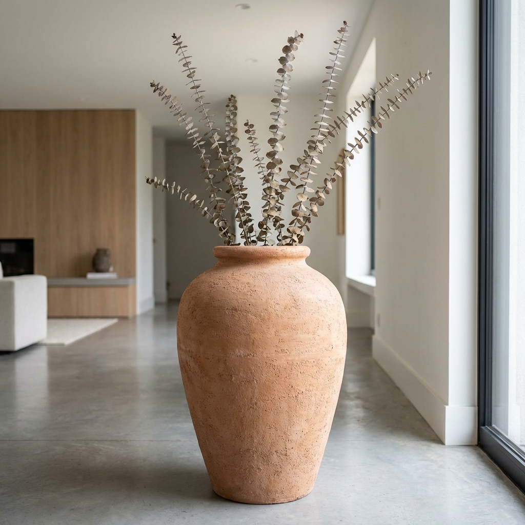 • These are not just large table vases but substantial ceramic floor vase styles, often resembling outdoor planters brought indoors.