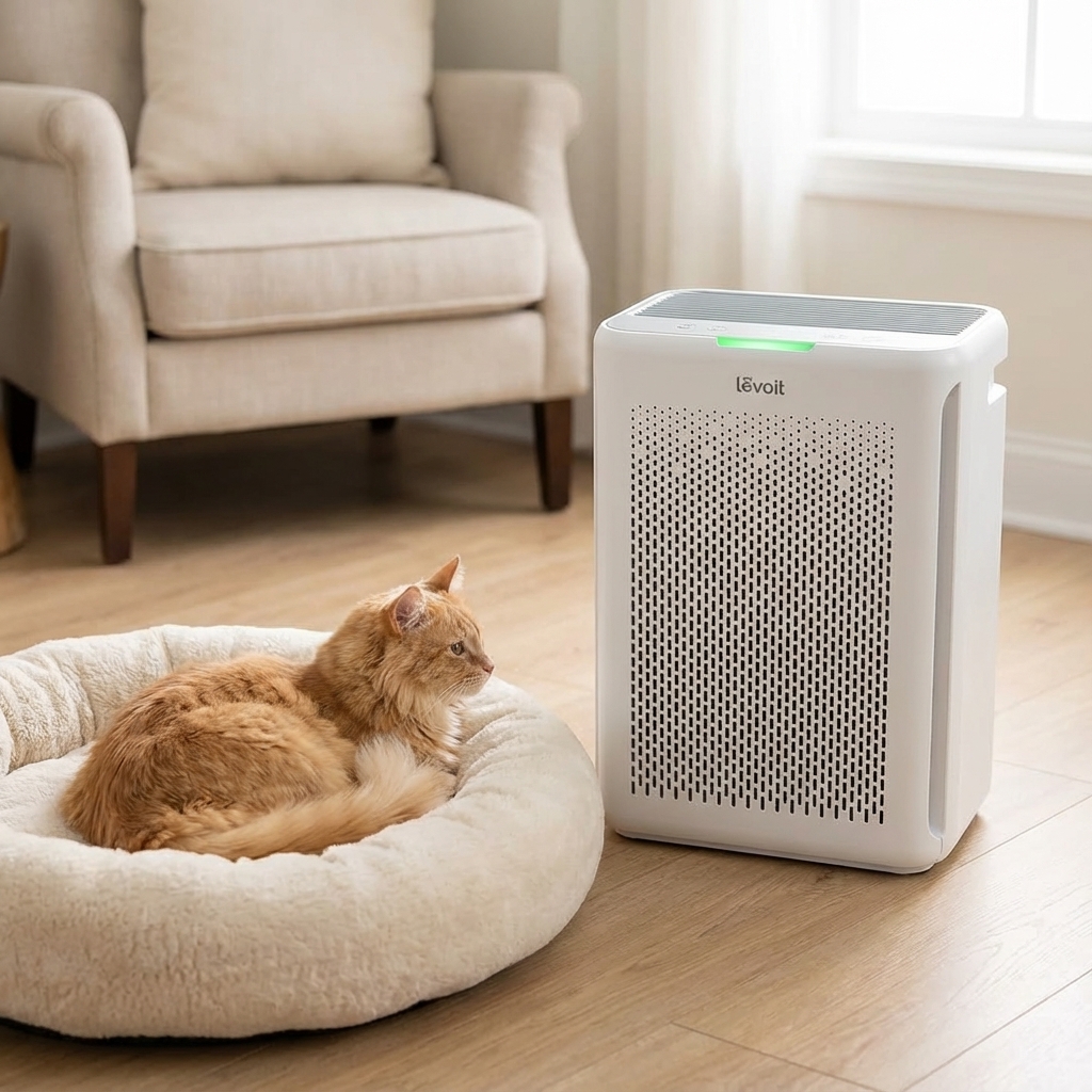The Levoit Core P350 Pet Care Air Purifier is engineered specifically for households with pets. Its 3-stage filtration system is a key attribute, featuring a non-woven fabric pre-filter that traps large particles like fur and hair. The H13 True HEPA filter then captures 99.97% of airborne particles as small as 0.3 microns, including pet dander and pollen. What truly sets this product apart and pushes the pet-focused trend is its patented ARC Formula in the activated carbon filter, which is customized to chemically decompose and neutralize strong pet odors from litter boxes, saliva, and general pet smells, rather than just masking them. Its quiet operation, with noise levels as low as 24dB, ensures that it doesn't startle pets, making it a thoughtfully designed product for a pet-friendly home.