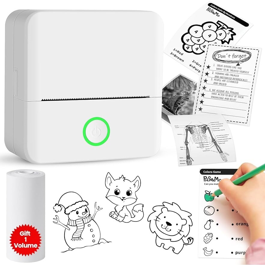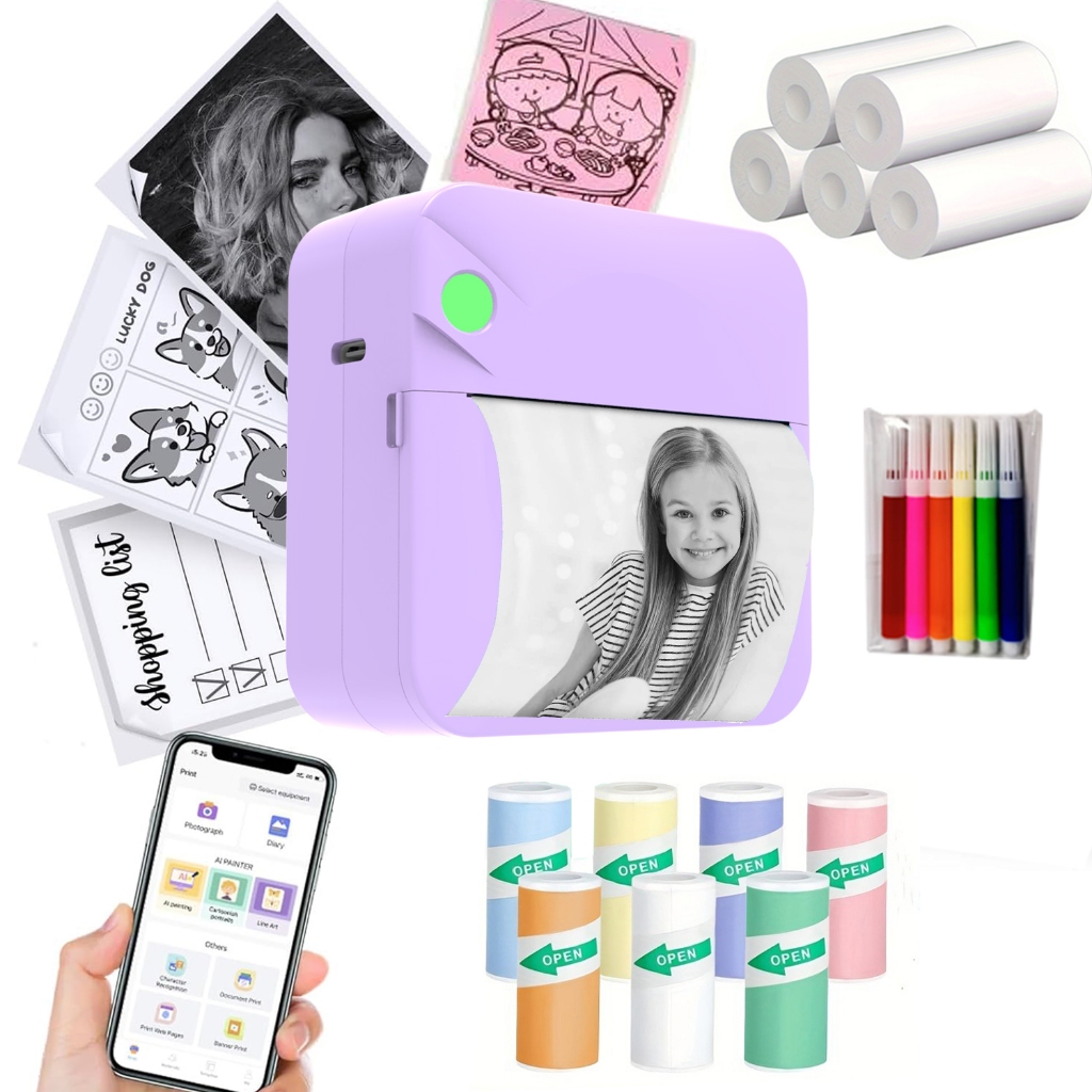 Mini Portable Wireless Bluetooth Thermal Photo Pocket Printer with optional accessories:1/2/3/5/10 rolls paper, 3/5/10 rolls color waterproof transparent sticker