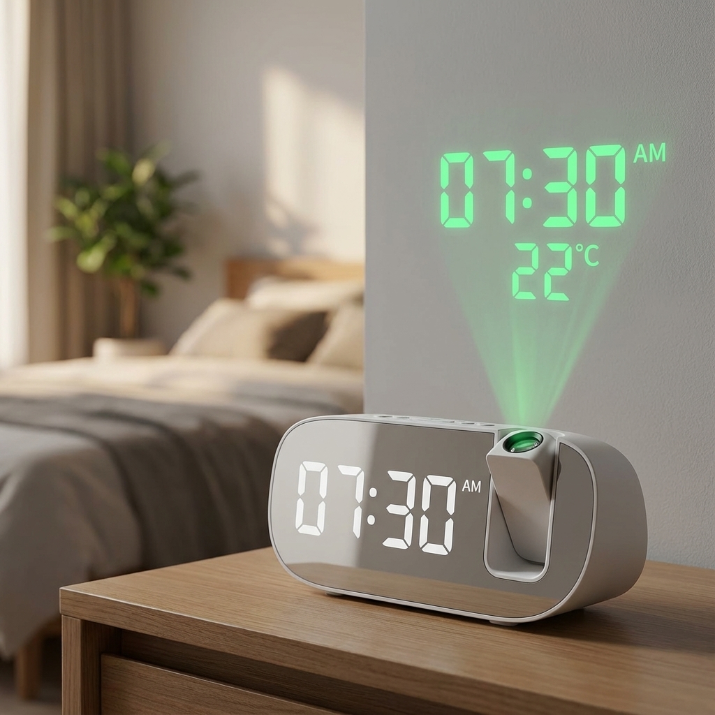 RadioShack's entry into this trend focuses on a sleek, modern design with practical features. The S750 model allows users to project the time with its 180-degree adjustable projector. It boasts a clear LED screen with four brightness levels to suit any preference, from bright daylight to a dim glow at night. This clock is also designed for the modern user, featuring a built-in USB port for charging devices and a dual alarm system with a snooze function, making it a functional and stylish addition to any bedroom.