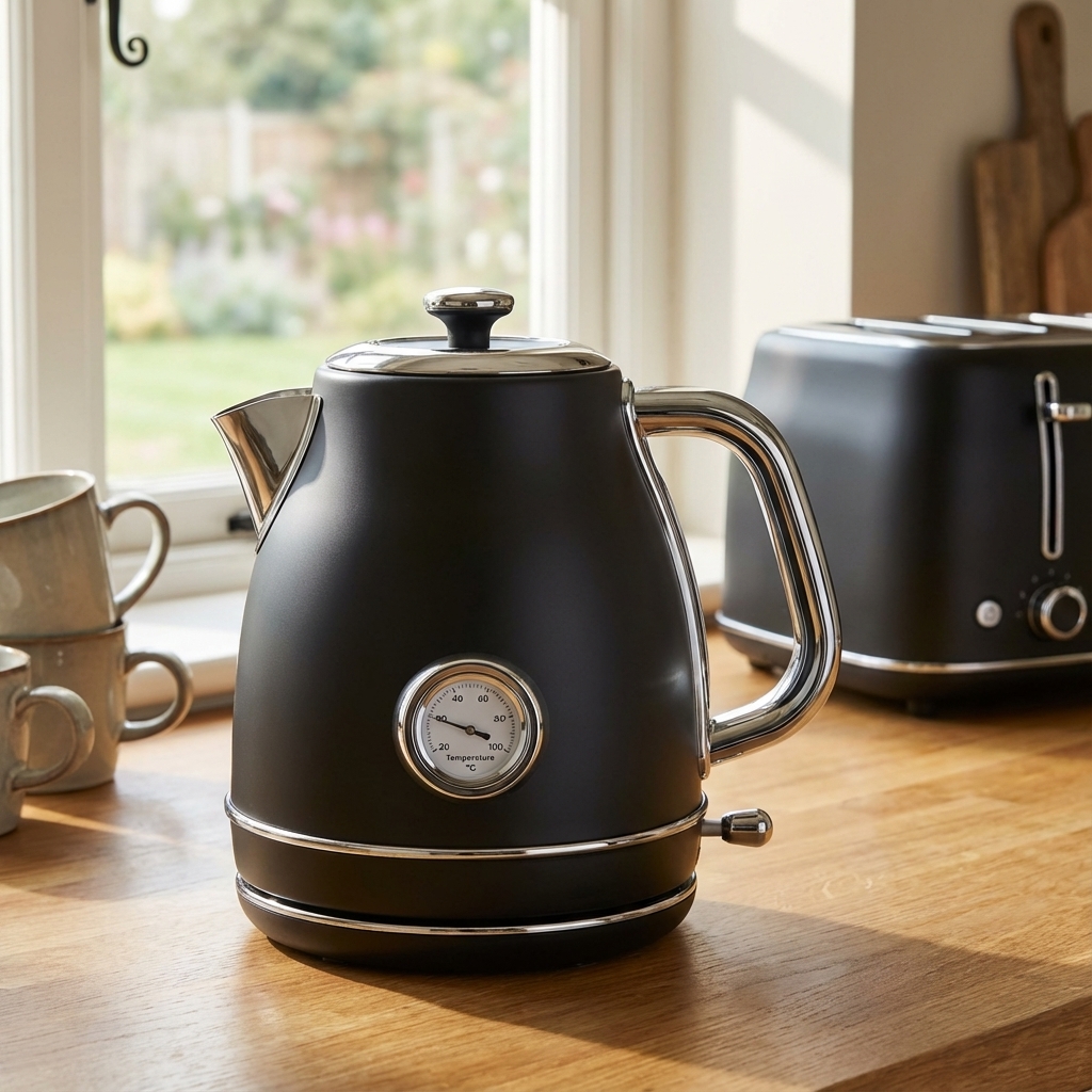 The Maximus Retro Style Electric Kettle offers a classic mid-century aesthetic with its textured, cream-colored finish and rounded silhouette. This product is a top-of-mind choice for consumers seeking the retro look at a more accessible price point, making the trend attainable for a wider market. It embodies the "Retro Revival" by combining nostalgic design cues with practical, modern-day performance features, such as a 1.7-liter capacity, a fast-boil 2000W element, an easy-to-view water window, and a 360° base with cord storage. Its presence in major department stores and online platforms underscores its popularity among trend-aware shoppers in the Philippines.