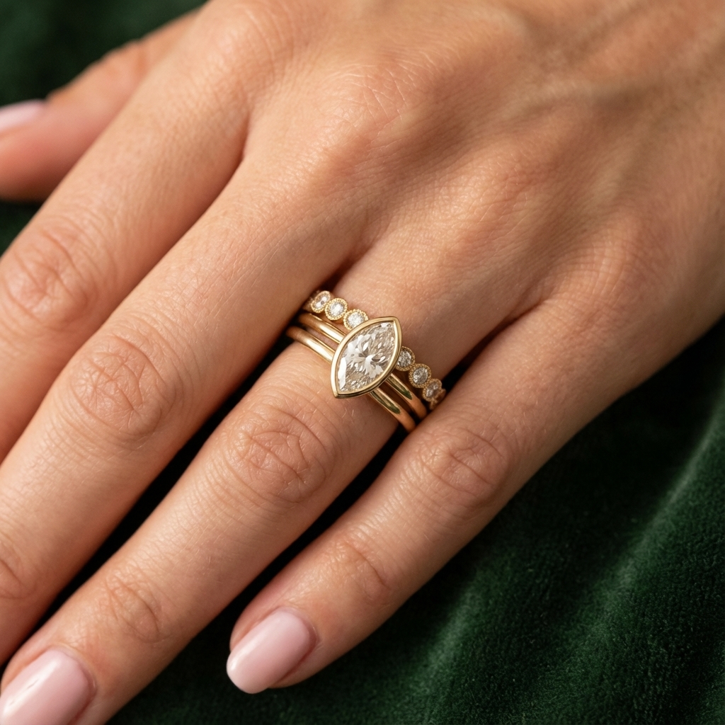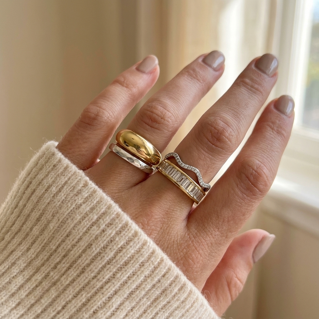 From the renowned Brazilian jeweler H.Stern, the MyCollection is designed to be personal and collectible, making its rings ideal for stacking. These rings often feature delicate designs with a central motif, such as a star or a small sphere, sometimes adorned with diamonds. The concept of the collection revolves around collecting different pieces that tell a personal story, which naturally lends itself to the stacking trend. The rings are crafted in 18K noble gold and can be found with details like cognac or black diamonds. By combining different rings from the MyCollection, the wearer can create a unique and meaningful stack that reflects their individual journey and style.