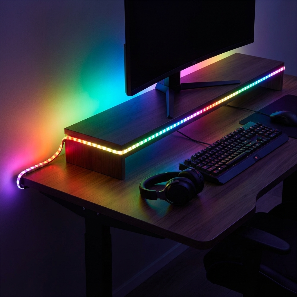 The Corsair iCUE LS100 is an iconic product for PC gamers and enthusiasts seeking to extend their setup's RGB lighting beyond the case. These addressable strips are designed to be placed on the back of a monitor, creating an immersive ambient backlight that dynamically matches the on-screen action in games and movies. The key to the LS100's influence is its deep integration with Corsair's powerful iCUE software, which allows for sophisticated, per-LED customization and synchronization across all Corsair peripherals, from keyboards to case fans. The kit includes external strips with a light-diffusing casing that creates a smooth, blended glow, pushing the trend of creating a complete and cohesive gaming environment.