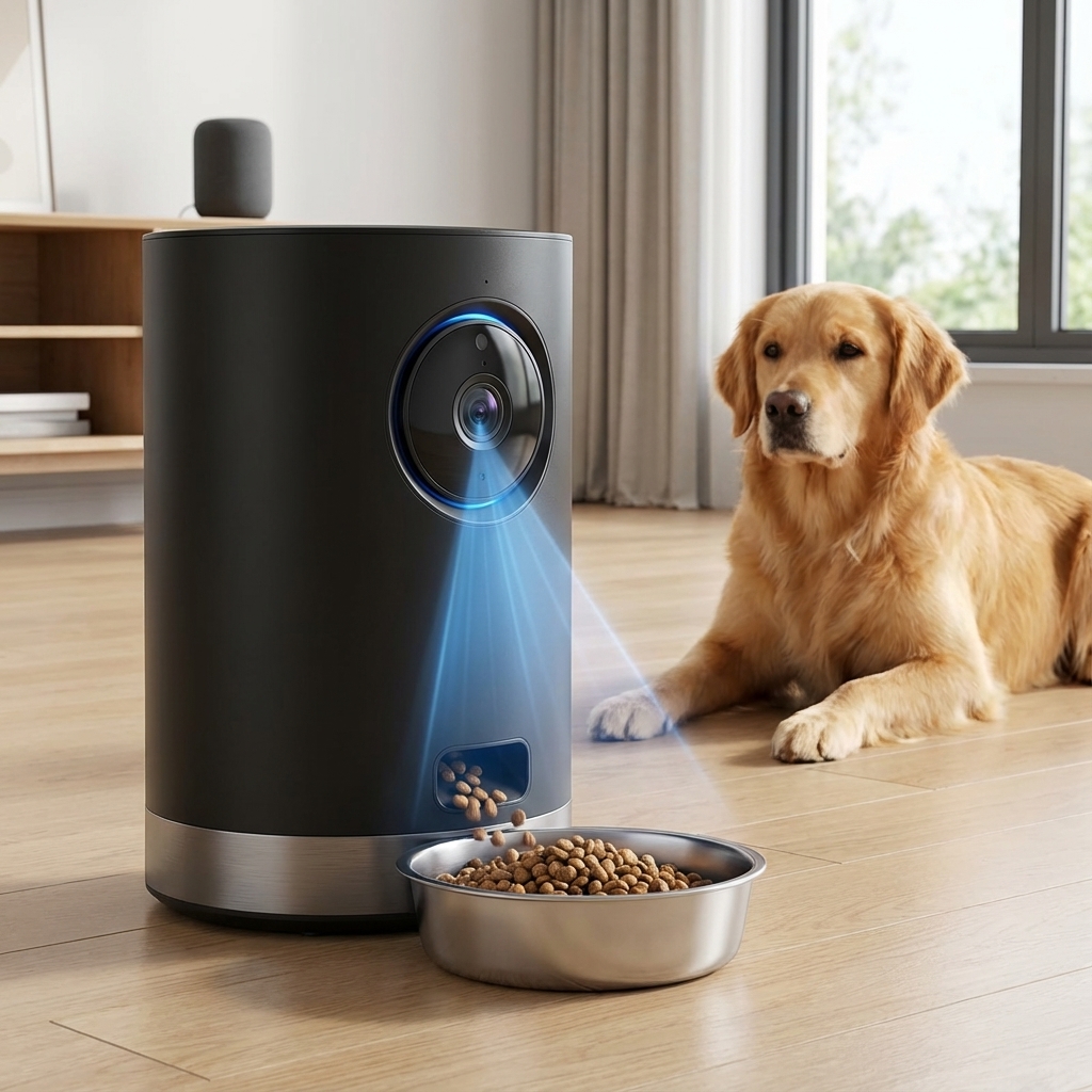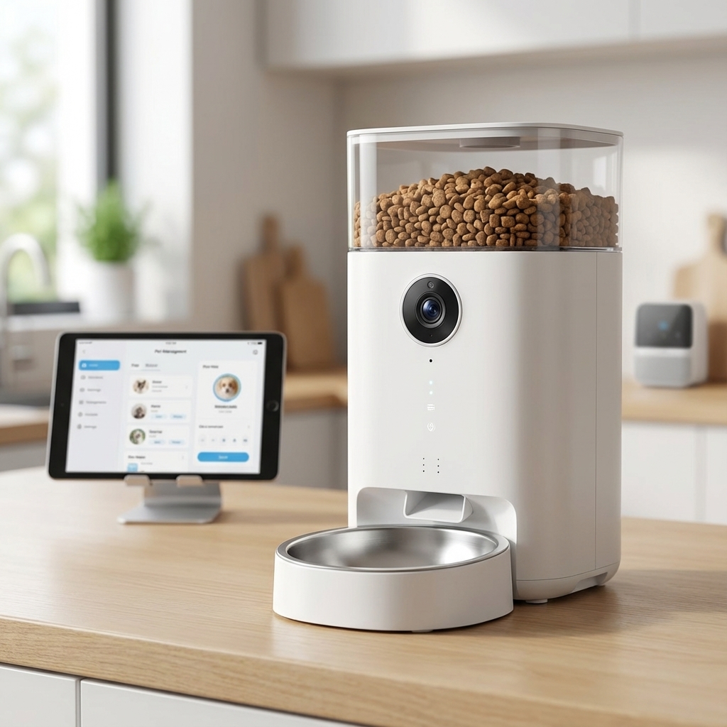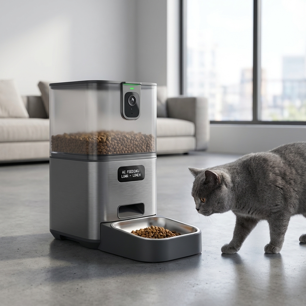 A premium, high-tech feeder that integrates into a smart pet home ecosystem. It allows owners to set precise, portion-controlled meal schedules via the Whisker app, which also sends notifications for low food levels and tracks feeding habits. The feeder features anti-jam technology and a battery backup to ensure feeding schedules are maintained during Wi-Fi or power outages. Data from the feeder contributes to a broader health profile when used with other smart devices from the brand.