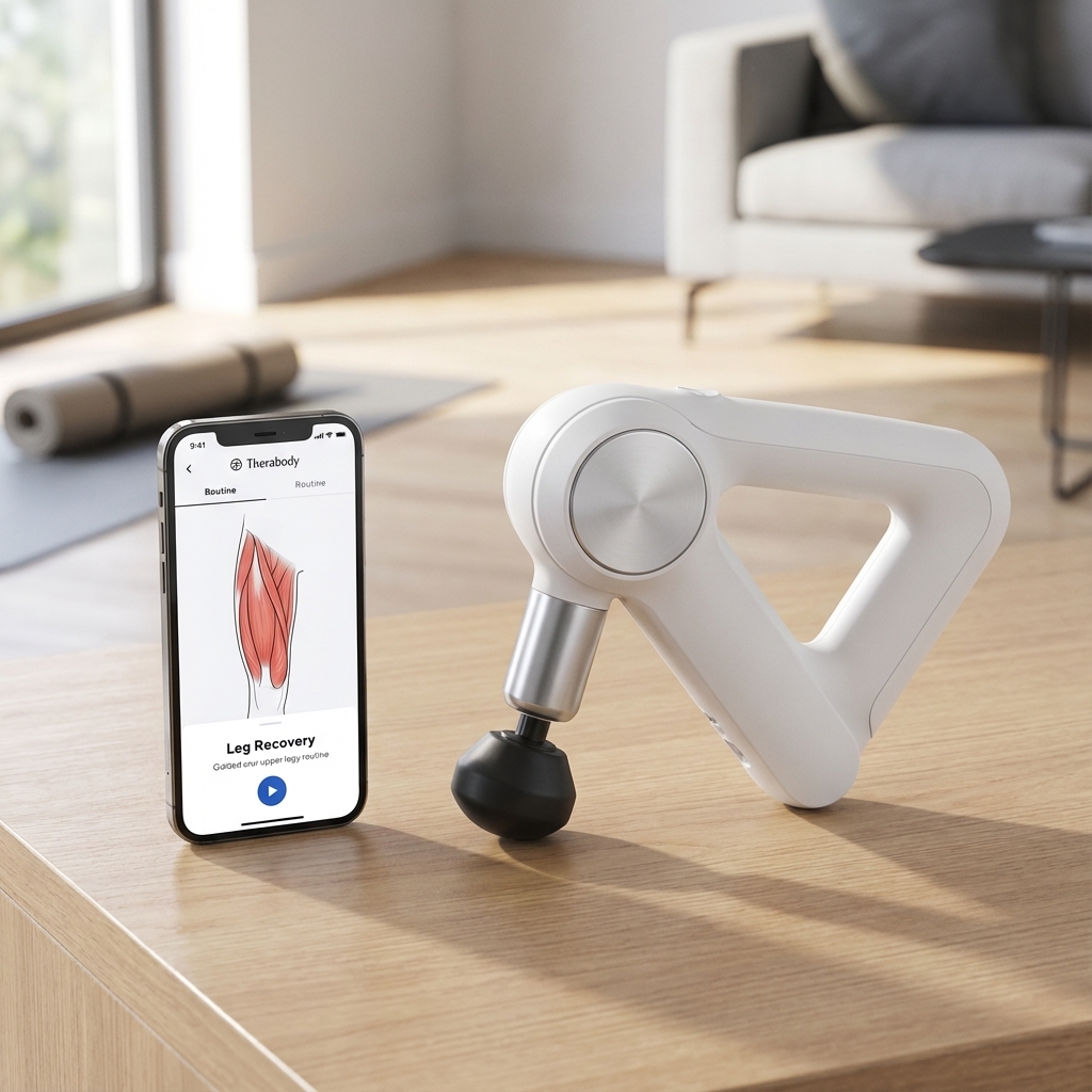 Therabody's latest innovation, the Theragun Sense, is uniquely designed for both physical recovery and mental wellness. It stands out with an easy-to-use LCD screen that visually guides users through step-by-step massage routines directly on the device. The device connects to the Therabody app, which offers a library of customizable guided routines that can be downloaded to the Theragun Sense for on-the-go access. A standout feature is its ability to connect with wearables like the Apple Watch and Garmin to provide AI-driven, personalized recovery plans based on the user's activity data. It also includes a biometric sensor for on-device heart rate readings and guided breathing exercises, pushing the trend beyond simple muscle relief into holistic stress reduction.