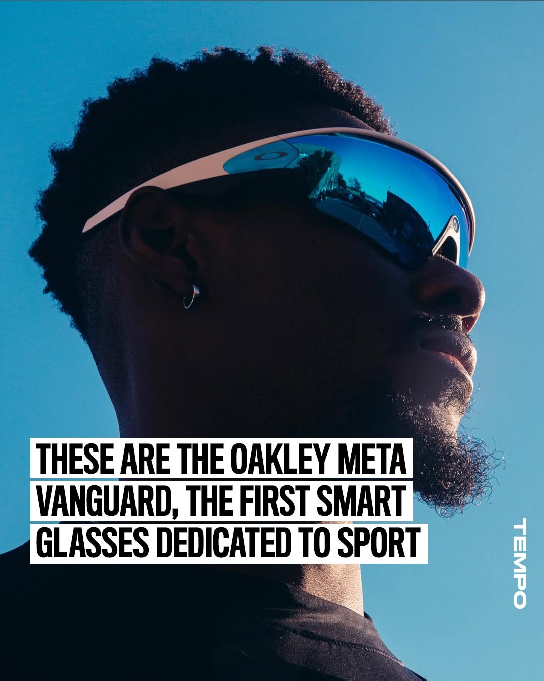 A sport-focused smart glass combining Oakley's performance design with Meta's AI technology. It features an integrated 12MP ultra-wide camera for hands-free photo and 1080p video capture, open-ear speakers for audio without blocking ambient sounds, and Meta AI for voice commands, real-time information, and live-streaming. The glasses are compatible with fitness apps like Garmin and Strava.