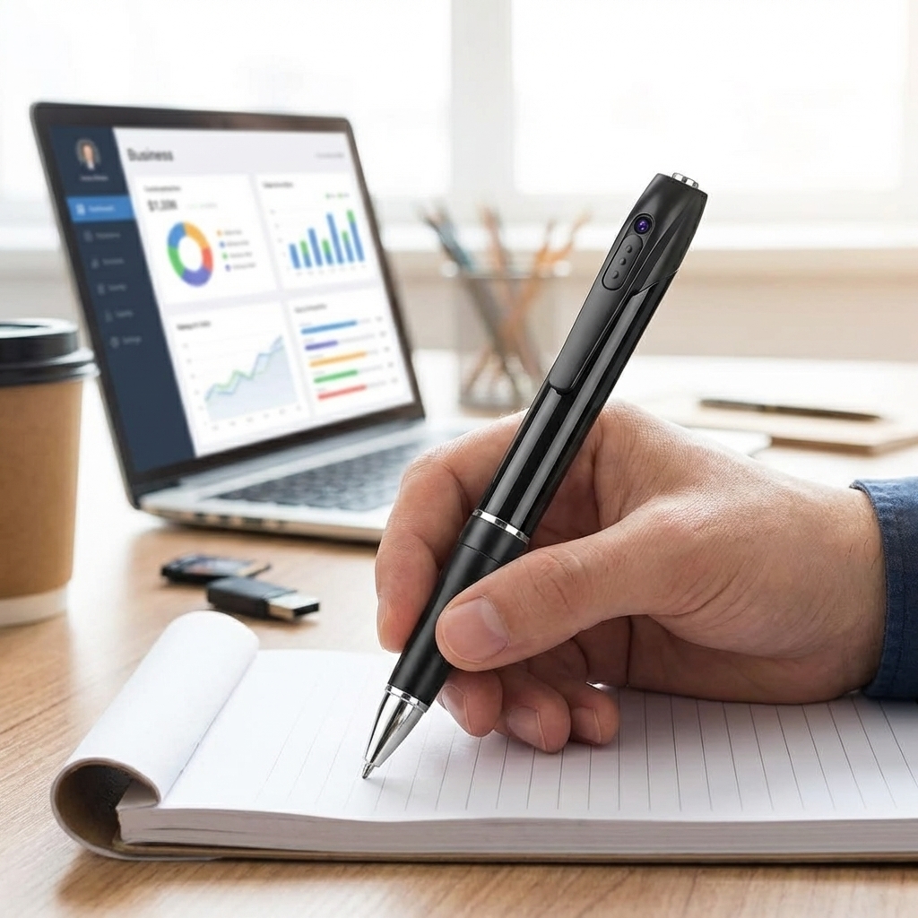 These devices look and function like regular pens but have a hidden camera for video recording. They typically record in high definition (1080P) and also capture audio.