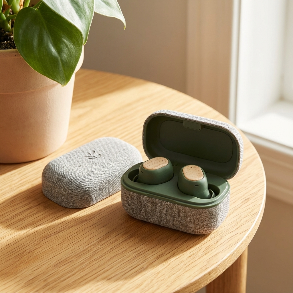 Crafted from sustainable materials such as bamboo, recycled silicone, and the brand's signature REWIND™ fabric. These true wireless earphones are water and sweat-resistant, feature sensor-activated touch control, and offer a long battery life. The brand's commitment extends to its eco-friendly packaging.