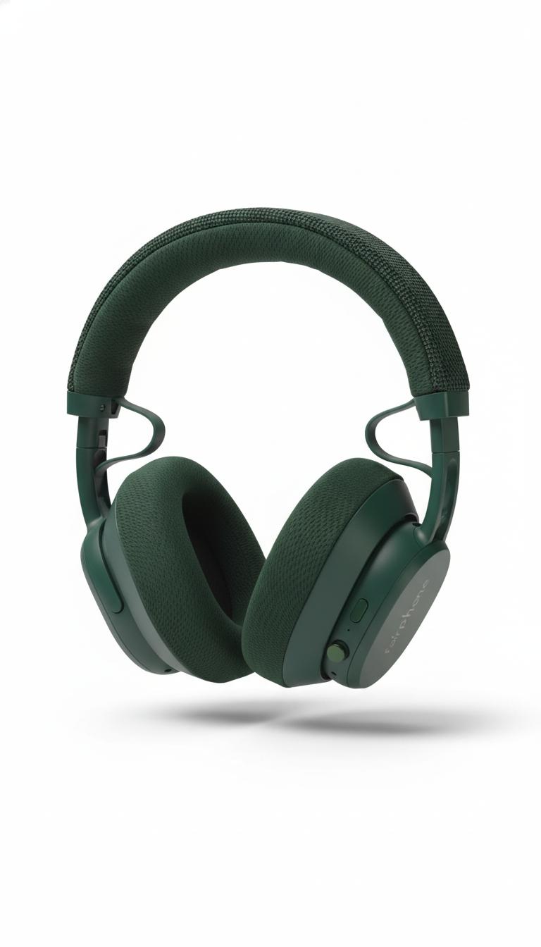 Over-ear headphones designed to be easily repaired to reduce e-waste. The 2025 version uses 100% fair-mined cobalt, copper, and silver, and 100% recycled rare earth elements. They are assembled using 100% renewable energy, showcasing leadership in sustainable and ethical electronics.