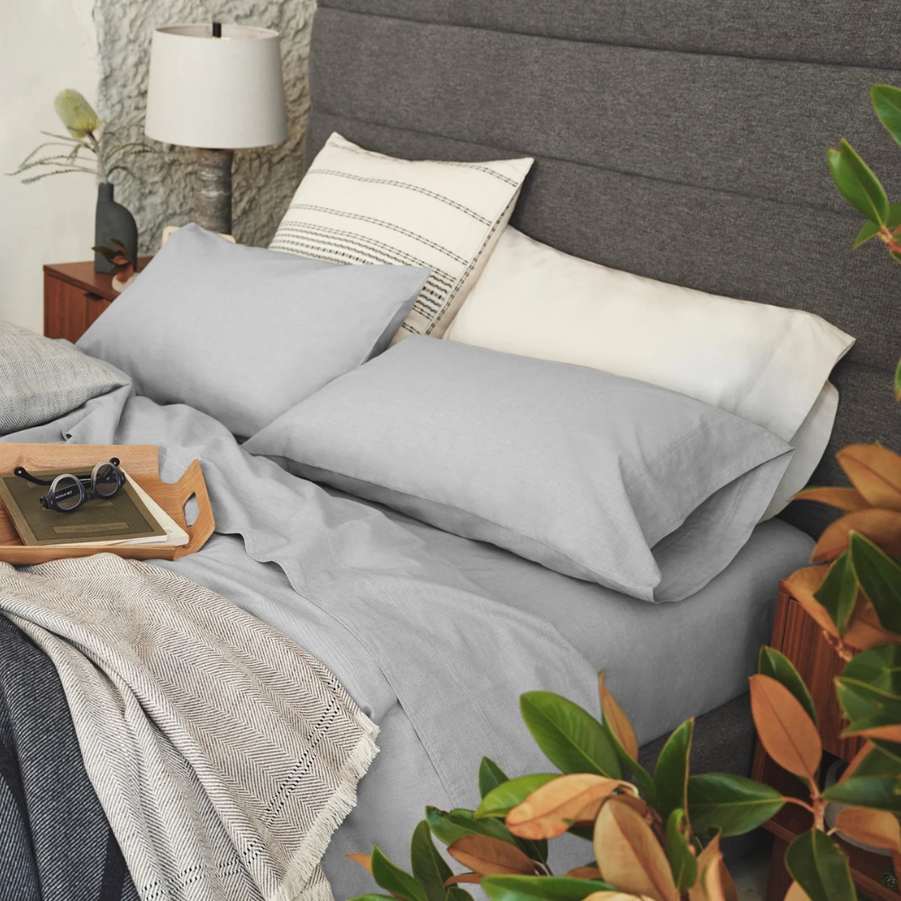 Coyuchi has been a leader in organic home textiles for over 30 years and was the first to bring organic cotton bedding to the United States. Their Crinkled Percale™ Organic Sheet Set is an iconic product that embodies the brand's commitment to sustainability. Made from 100% GOTS-certified organic cotton, these sheets are designed with a relaxed, crinkled finish that is soft straight out of the box. The brand's dedication to sustainability extends beyond its materials, with a take-back program called 2nd Home, which allows customers to return used textiles for renewal, upcycling, or recycling, diverting significant waste from landfills. Coyuchi also holds MADE SAFE certification, ensuring its products are free from harmful toxins.