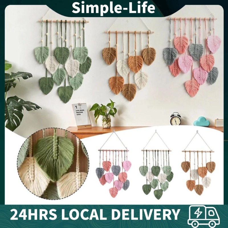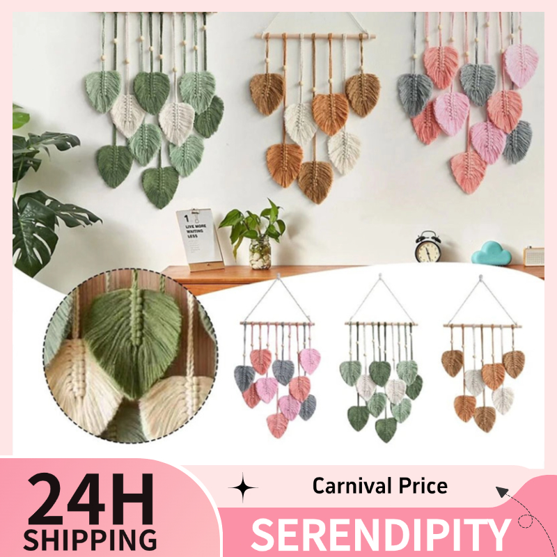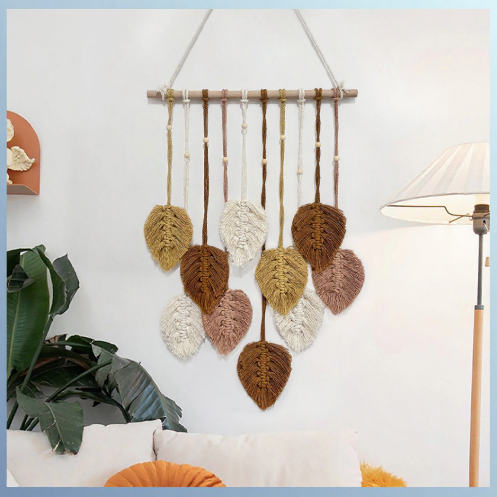 Boho Wall Decor Macrame HandmadeYarn Woven Wall Art Leaf Tapestry Wall Hanging Woven Macrame
