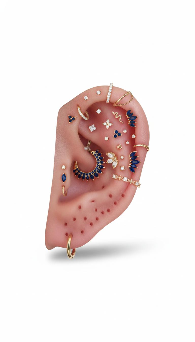 Credited with pioneering the curated ear concept, Maria Tash's designs are known for their delicate yet edgy aesthetic, combining precious metals with high-quality diamonds and gemstones. The Diamond Eternity is an iconic design featuring a full circle of diamonds, designed to be worn in various piercings from the lobe to the helix. This piece offers a foundational yet luxurious element that can be built upon with smaller studs and charms, encouraging a mix-and-match approach to ear styling.