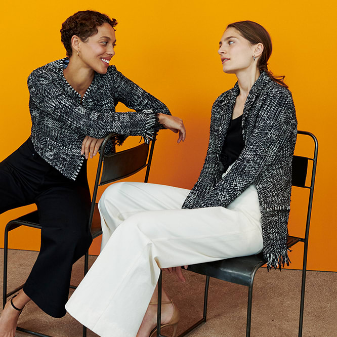 M.M.LaFleur's Merritt Jardigan, a jacket-cardigan hybrid, offers the structure of a blazer with the comfort of a knit. When paired with the Milo pants, the outfit demonstrates functional, comfortable power, proving that office attire can be both sophisticated and easy to wear, transitioning seamlessly between formal and casual settings.