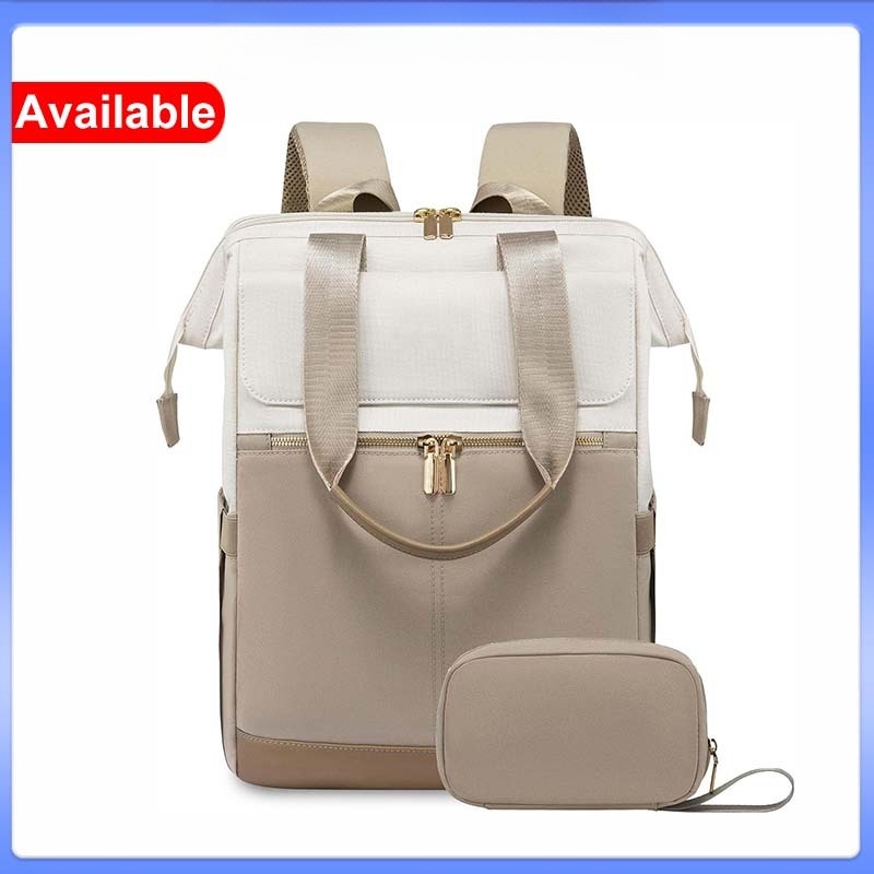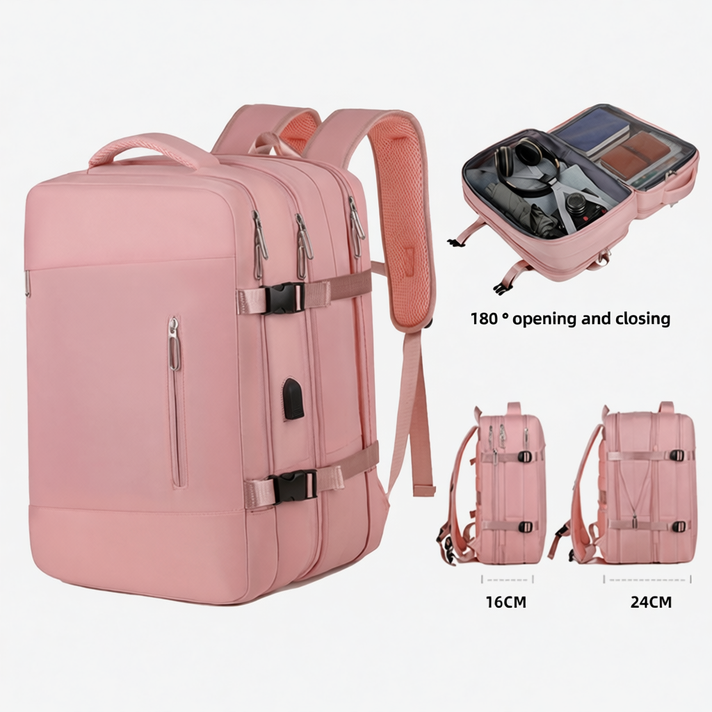 This category consists of stylish and functional backpacks designed with a pass-through sleeve on the back. The luggage sleeve allows the backpack to be securely slipped over the handle of a women's rolling luggage, enabling hands-free movement.