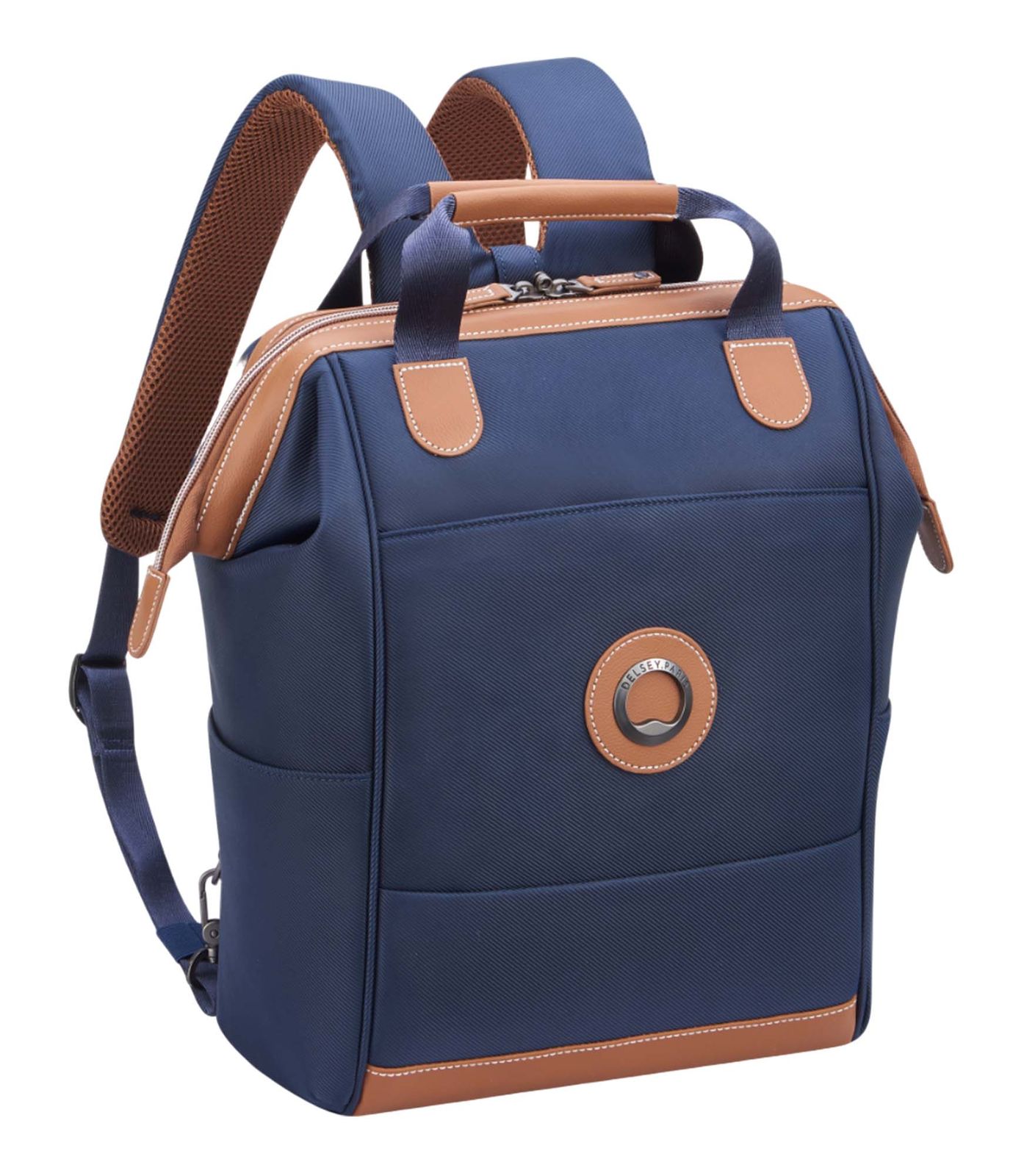 Delsey Paris, a brand synonymous with Parisian chic and innovation, offers the Chatelet Air 2.0 Backpack. This product is a standout for its elegant design and commitment to sustainability, as it's crafted from eco-friendly fabric made from recycled water bottles. Beyond its stylish chevron pattern and vegan leather trims, the Chatelet Air 2.0 is built for the modern traveler, featuring a padded laptop compartment, an antimicrobial lining, and numerous pockets for organization. Crucially, it includes a "trolley sleeve" on the back, allowing it to be conveniently secured to a suitcase. This backpack is the epitome of polished, eco-conscious travel, making it a top-of-mind choice for consumers who value both aesthetics and practicality.