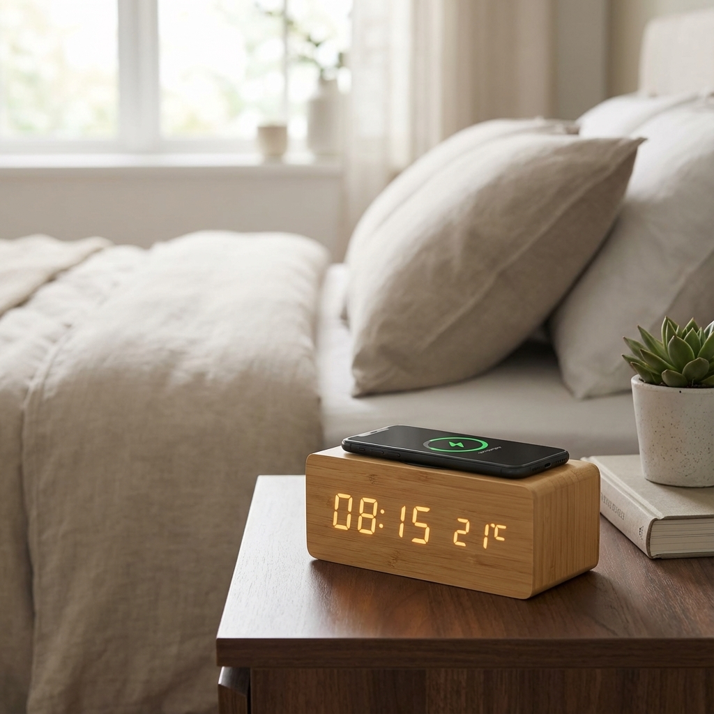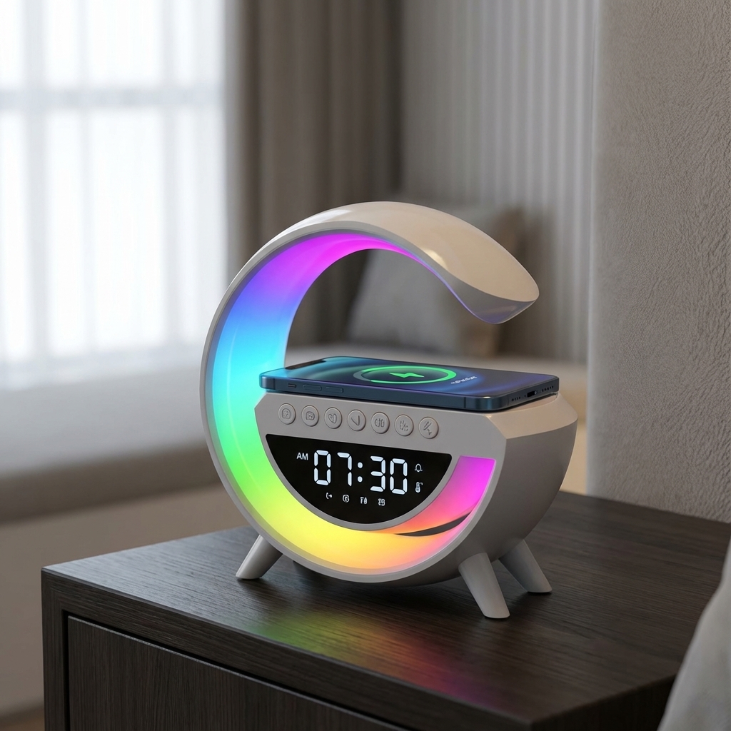 The Soundcore Wakey, from the popular electronics brand Anker, is an all-in-one bedside companion that has become iconic in this category. It combines a fast-wireless charger, a stereo Bluetooth speaker, an FM radio, and a white noise machine into a single, elegantly designed unit. The device helps push the trend by integrating a complete suite of nightstand functions, all controllable via a dedicated app. Users can set multiple alarms, listen to ambient sounds to fall asleep, and wake up to their favorite music or radio station, all while their phone charges wirelessly on top. Its combination of high-quality audio, smart features, and a clutter-free design has made it a top-of-mind product for tech-savvy consumers seeking to streamline their bedside setup.