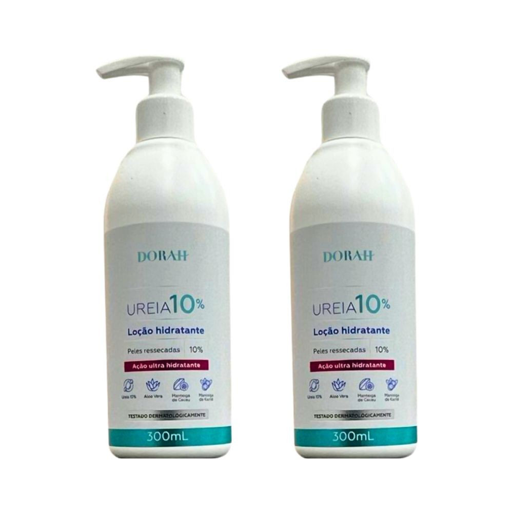 2x Loção de Uréia 10% (com Aloe Vera, Manteiga de Cacau e Karitê) - 300ml - Dorah Beauty & Wellness