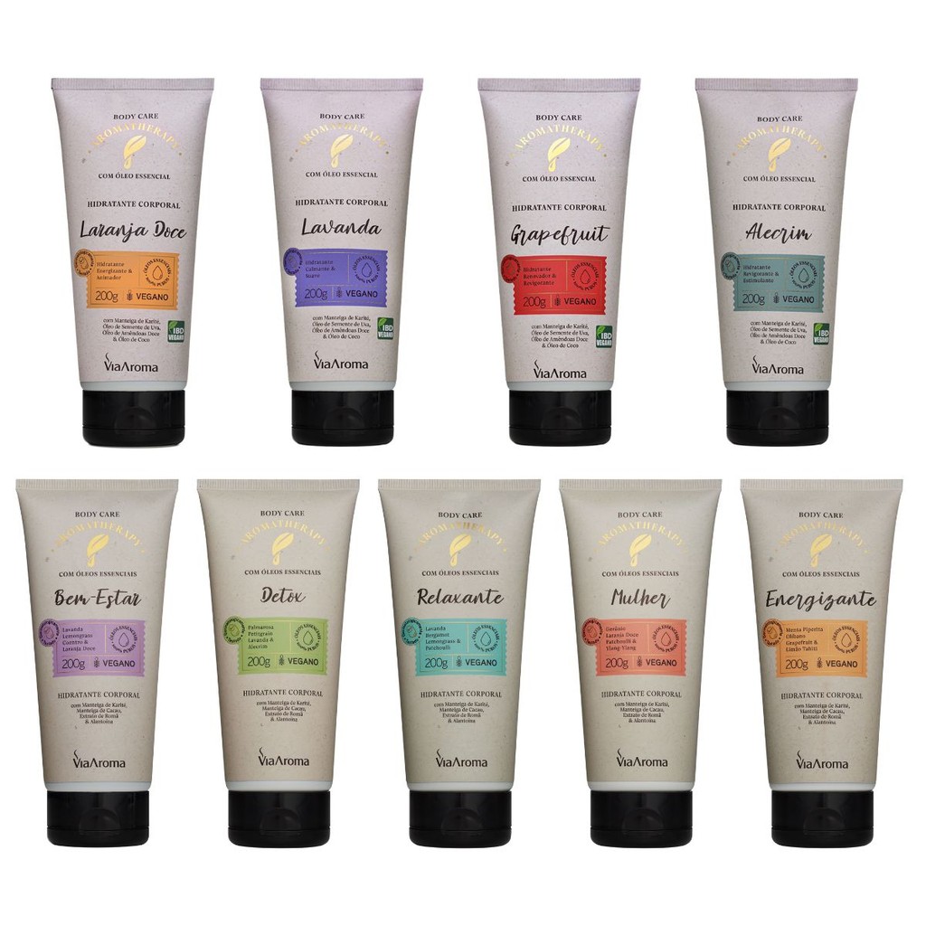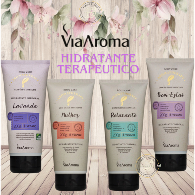 HIDRATANTE CORPORAL CREME PARA CORPO MASSAGENS TERAPEUTICAS LINHA AROMATHERAPY VIA AROMA 200G VEGANO