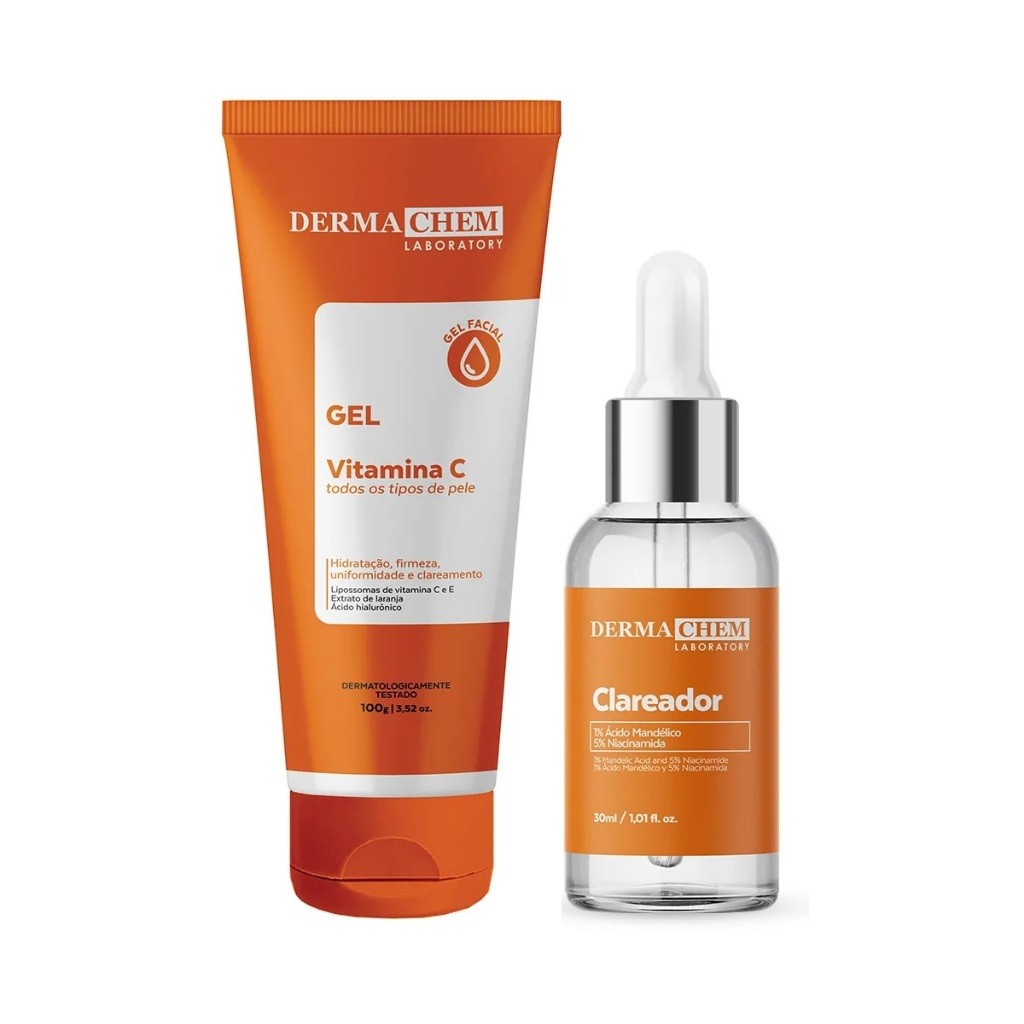 Dermachem Kit Serum Clareador Gel Anti-Idade Vitamina C Hidrata Clareamento Firmeza Uniformidade