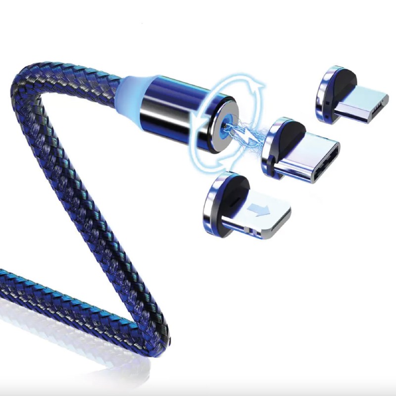 Cabo Carregador Magnético 3 Em 1 Carregamento super rápido de 3A com transferência de dados, função de rotação de 540°