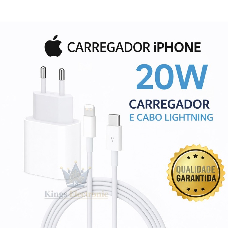 Carregador iPhone 20W e Cabo Lightning Alta Qualidade Para Iphone 11, 12, 13, 14, Pro Max