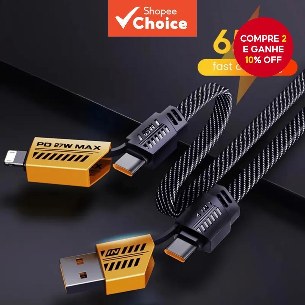 4 Em 1 Cabo De Carregamento Rápido De 65W Para Carregador Tipo C Usb Android Multi-Portas Linha De Fios Múltiplo