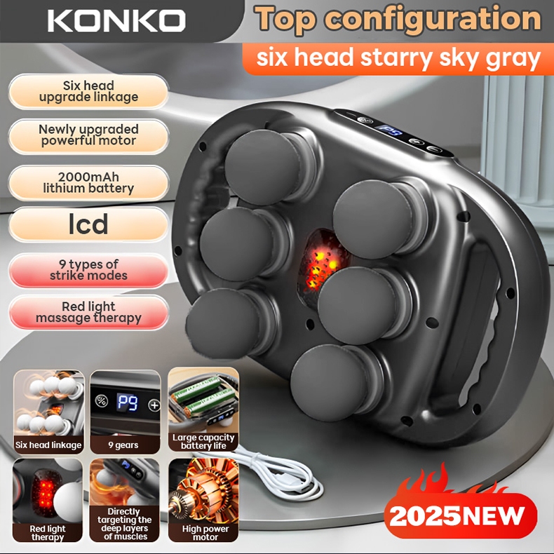 KONKO 6 Head Massage Gun Muscle Relaxation High Frequency Vibration Body Massager Muscle Fascia Gun