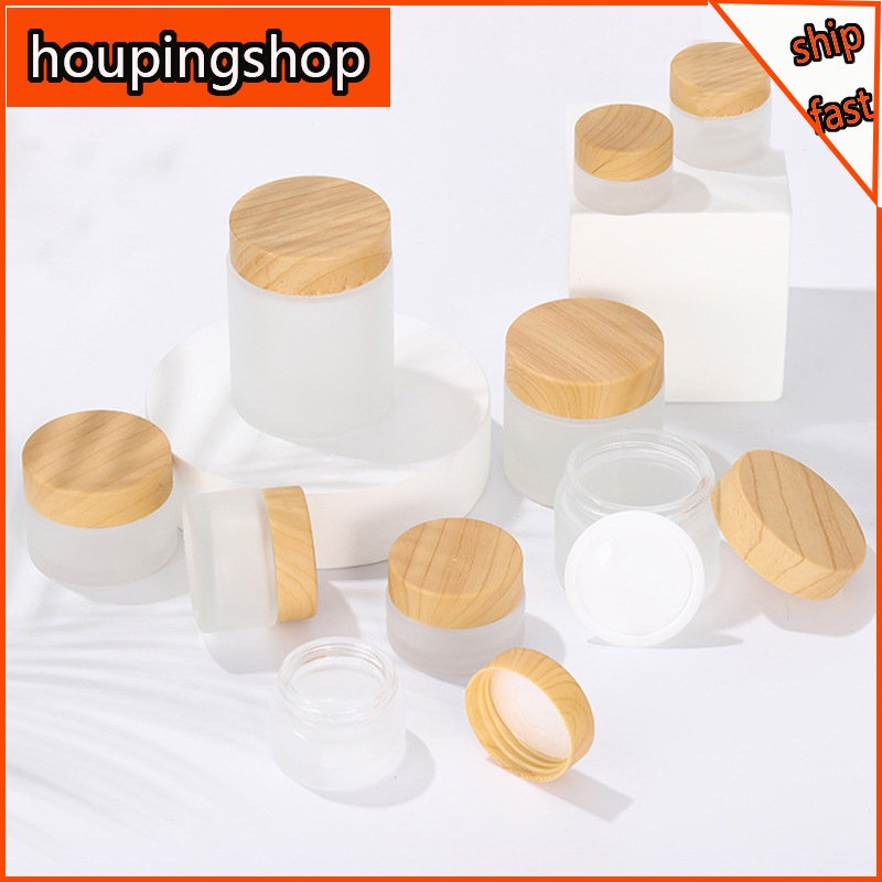 10g/30g/50g Glass Jar Container / Bekas Krim / Cosmetic Cream Jar Frosted Glass Cream Jar Wood Grain Glass Empty Jar Travel Refillabe Bottle