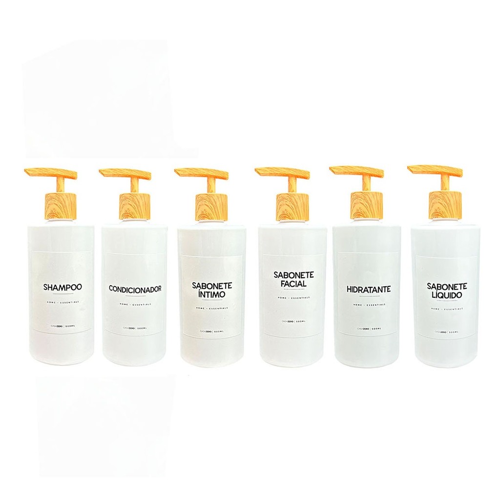Kit de Frascos Minimalista 500ml Branco/Bambu - Banheiro - Beleza