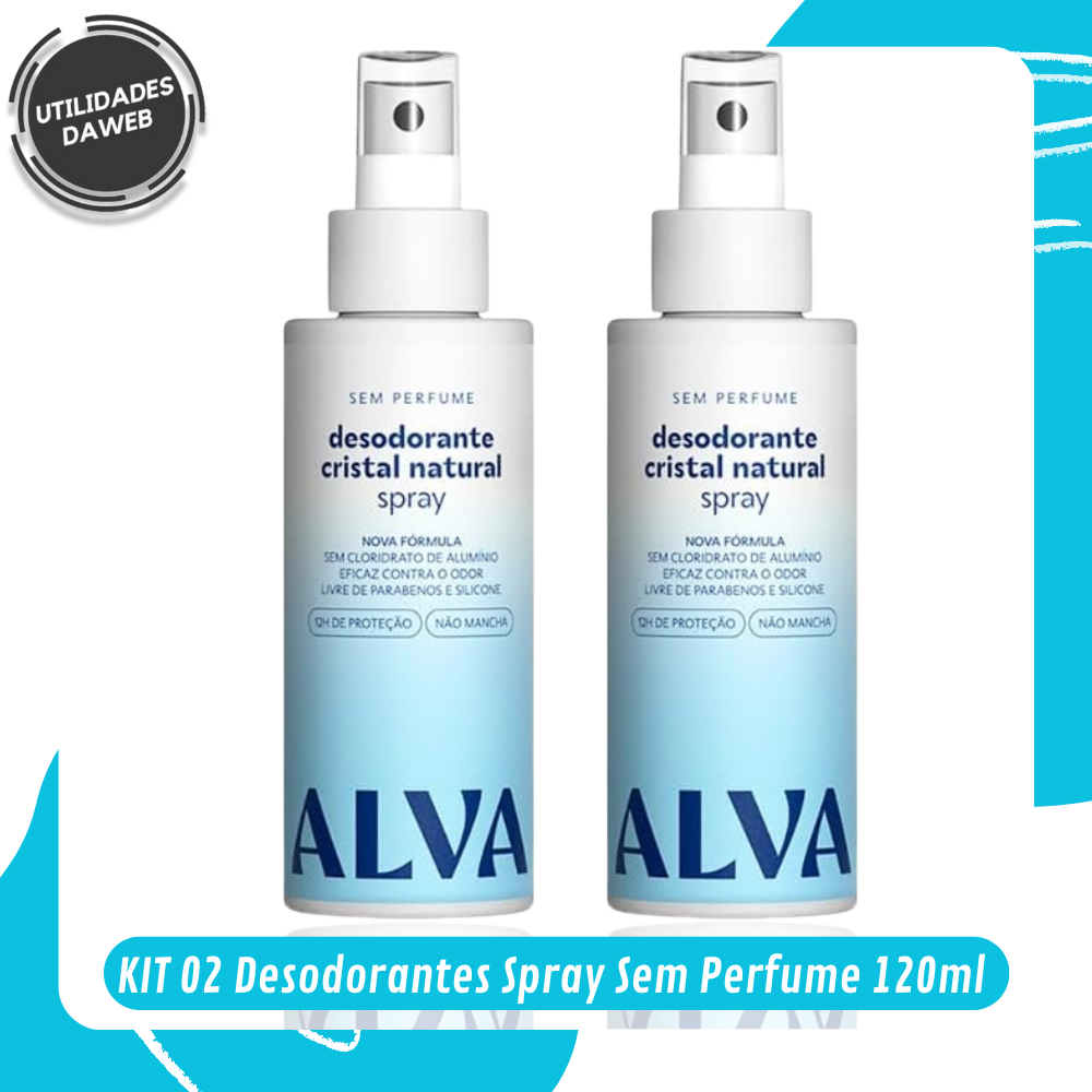 KIT 02 Desodorantes Spray Alva Sem Perfume Natural Vegano Anti Odor