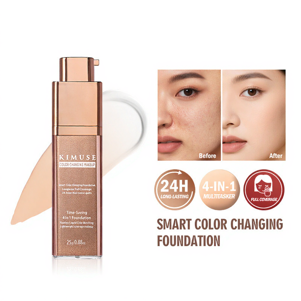 KIMUSE Smart Color-Changing Foundation – 24H Waterproof, Buildable Coverage