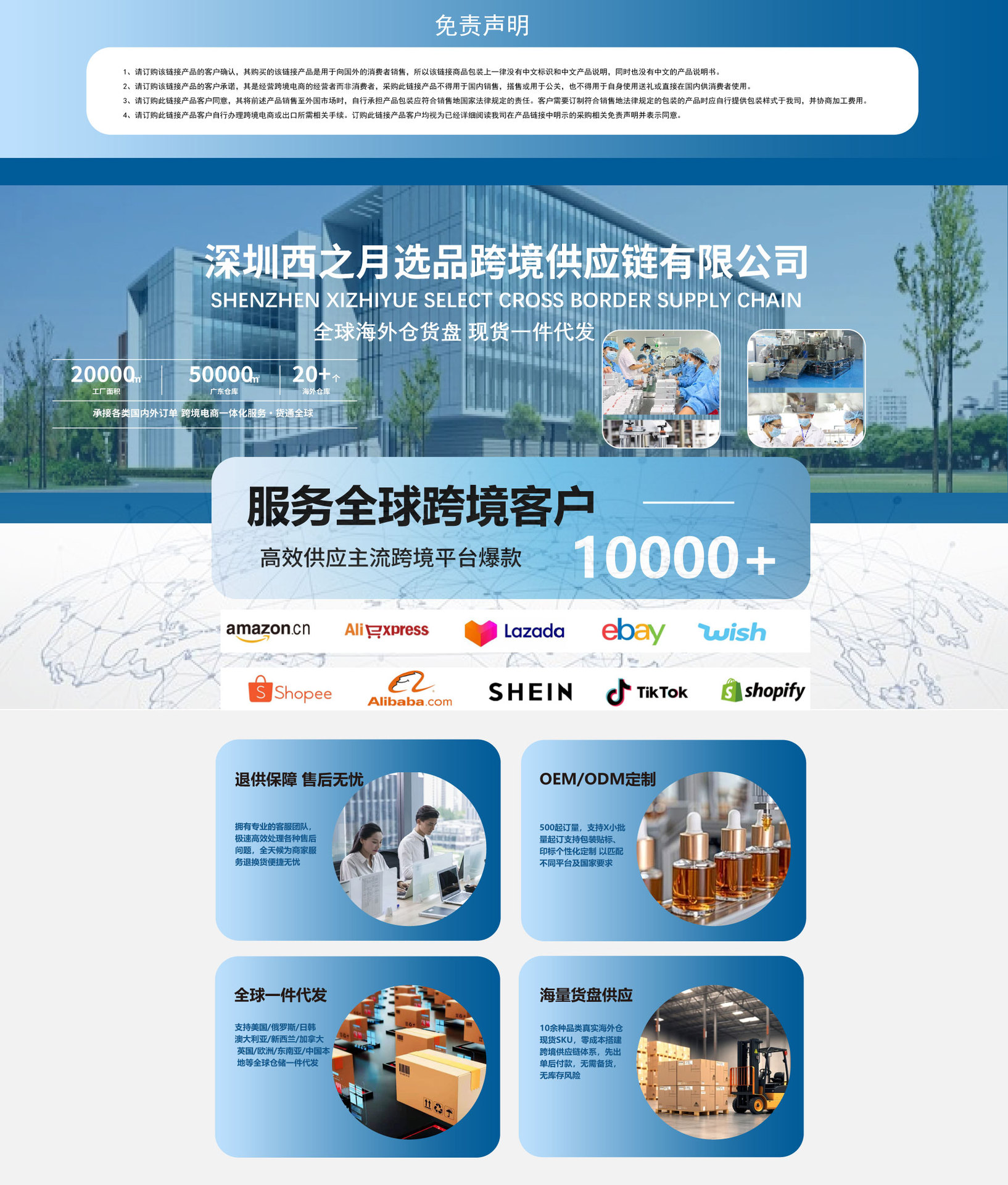 Shenzhen West Moon Selection Cross-border Supply Chain Co., Ltd. Guangdong Shenzhen Shenzhen City Longgang District Bantian Street Nankeng Community Yaxing Road No. 8 Xinghe WORLD Twin Towers West Tower 63rd Floor 6301-2 | Tier 5 | 5+ | 0% | 54 | Good DisputeGood Service | — | Quality 1.7 Returns 3.0 Logistics 4.0 Consult 5.0 Dispute 5.0 Overall 4.0 | View contact |