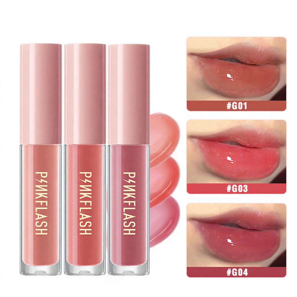 Pinkflash 3pcs Lip Gloss Set Moisturizing Shine Shimmer Lipstick Plumping Tint Care