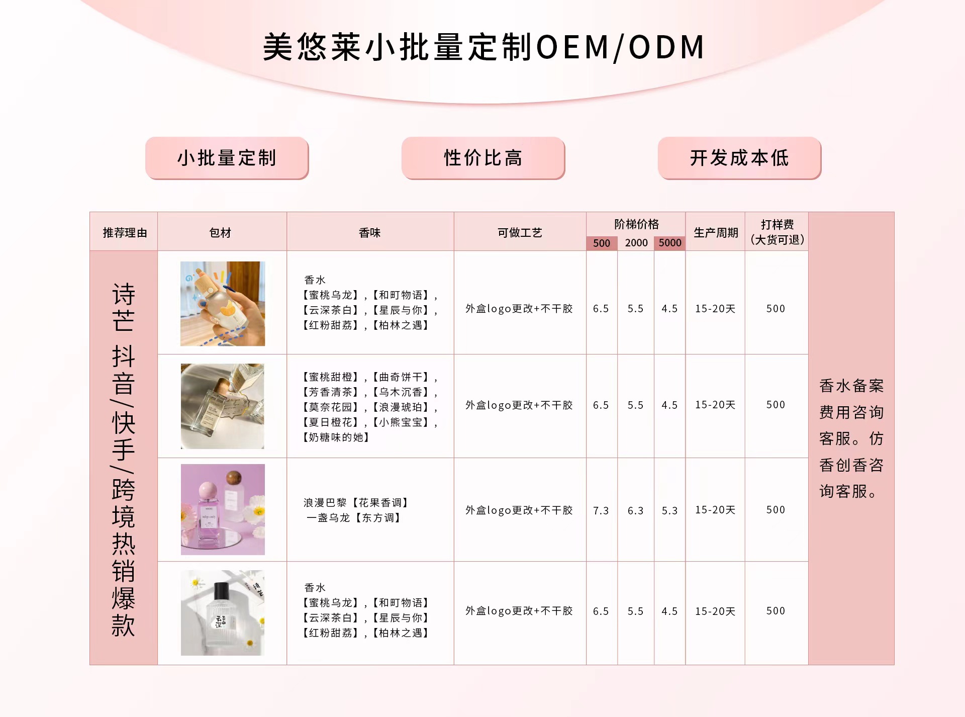 Yiwu City Xiangmu Cosmetics Co., Ltd. Zhejiang Jinhua Jinhua City Yiwu City | Tier 4 | 5+ | 0.23% | 11.8k | Good DisputeGood Service | Women's PerfumeAromatherapyMen's Perfume | Quality 3.7 Returns 3.7 Logistics 4.6 Consult 4.0 Dispute 5.0 Overall 4.5 | View contact | |
