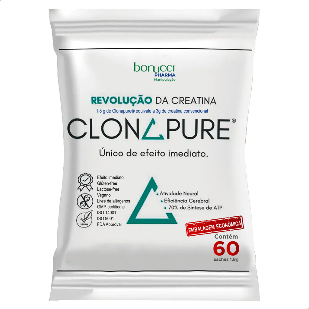 CLONAPURE 60 SACHES 1,8G SUPLEMENTO AVANÇADO RAPIDA ABSORÇÃO SUPORTE ENERGETICO FISICO E MENTAL