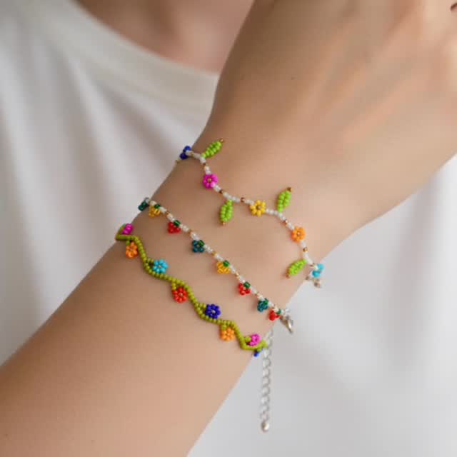 Set De 4 Tobilleras De Florecitas De Colores Moda