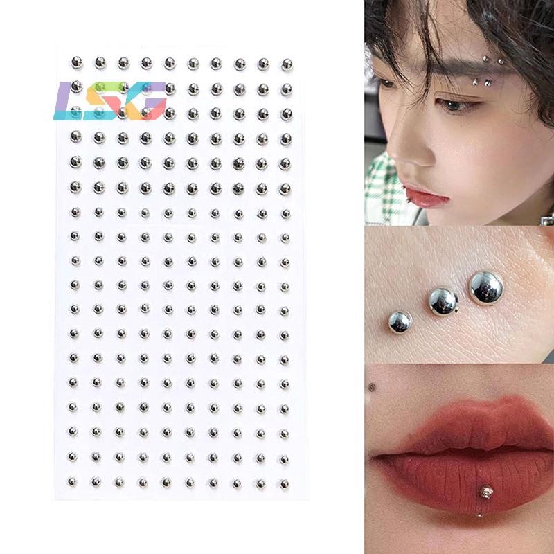 【Wholesale】1 Set 3metersm-6mm Fake Nose Ring Dimple Stickers Stainless Steel Lip Studs Face No Piercing Body Jewelry Unisex